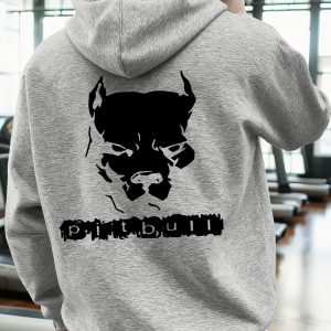 Unisex Fashion Print Drawstring Black Hoodie, Daily Wear Sweatshirt with Pitbull Silhouette