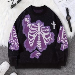 Be the first to review “1pc Men’s Casual Pullover – Round Neck Sweater – Regular Fit for Autumnu002FWinter – Polyester Knit with Halloween Skeleton Pattern” Cancel reply