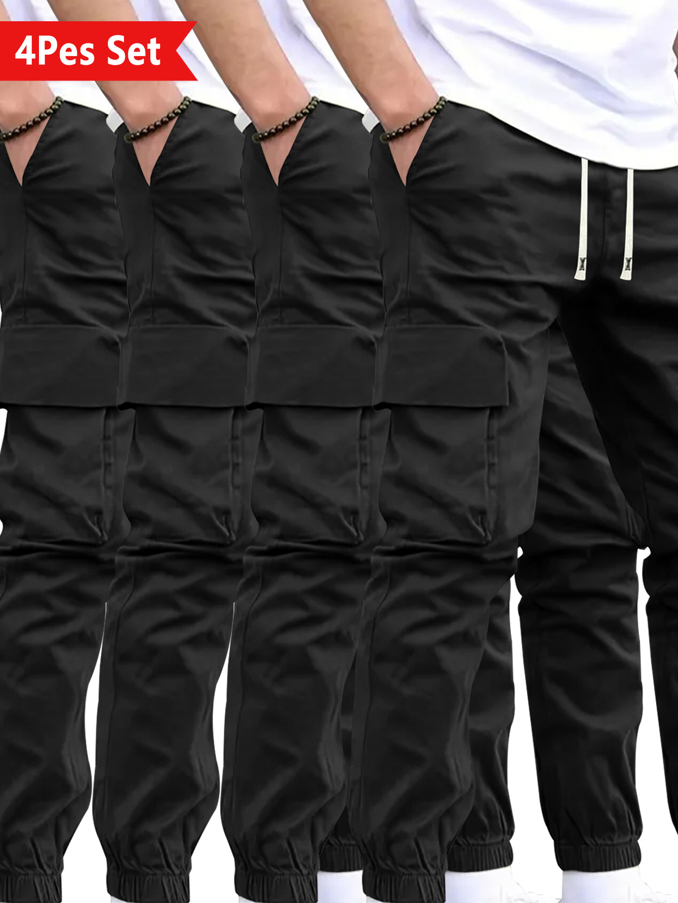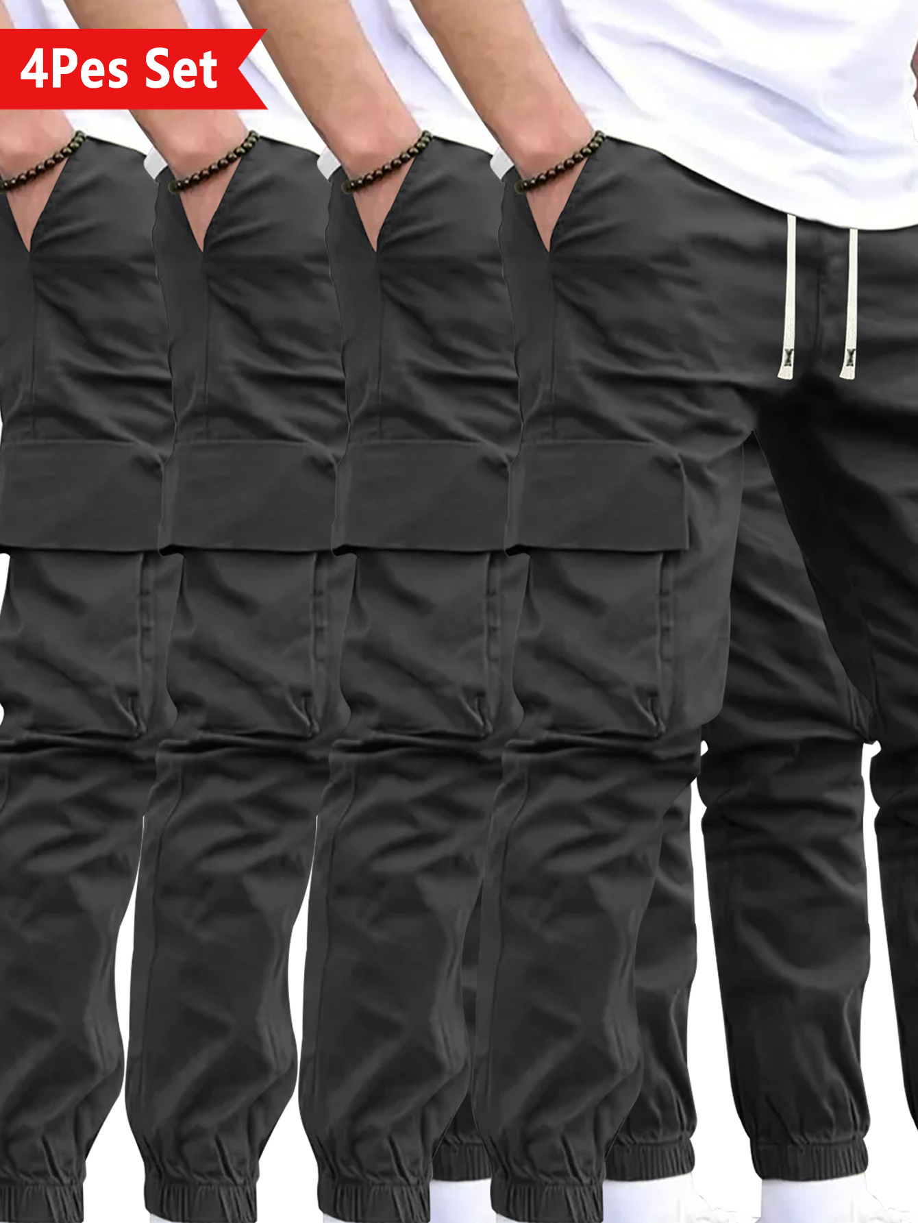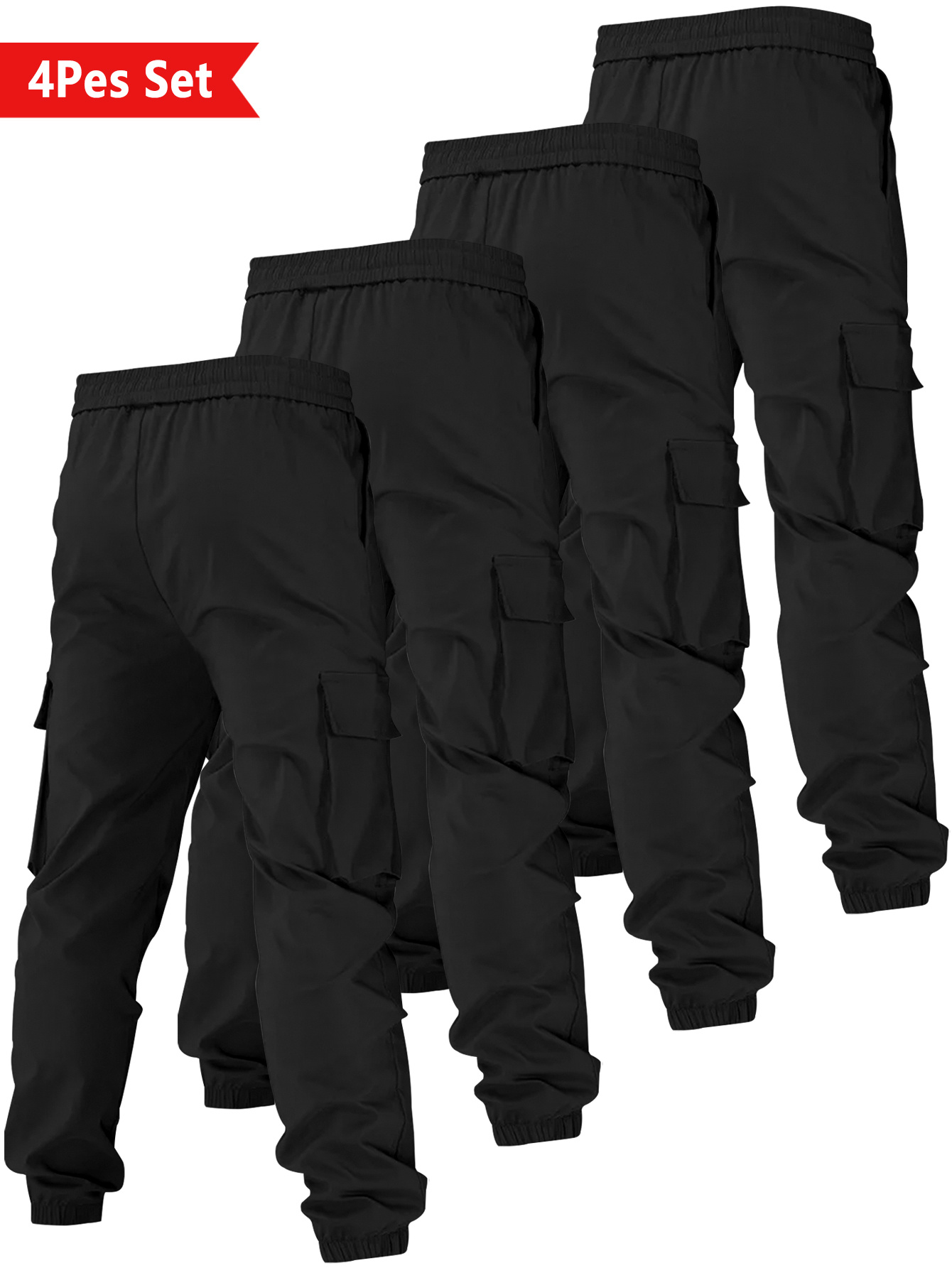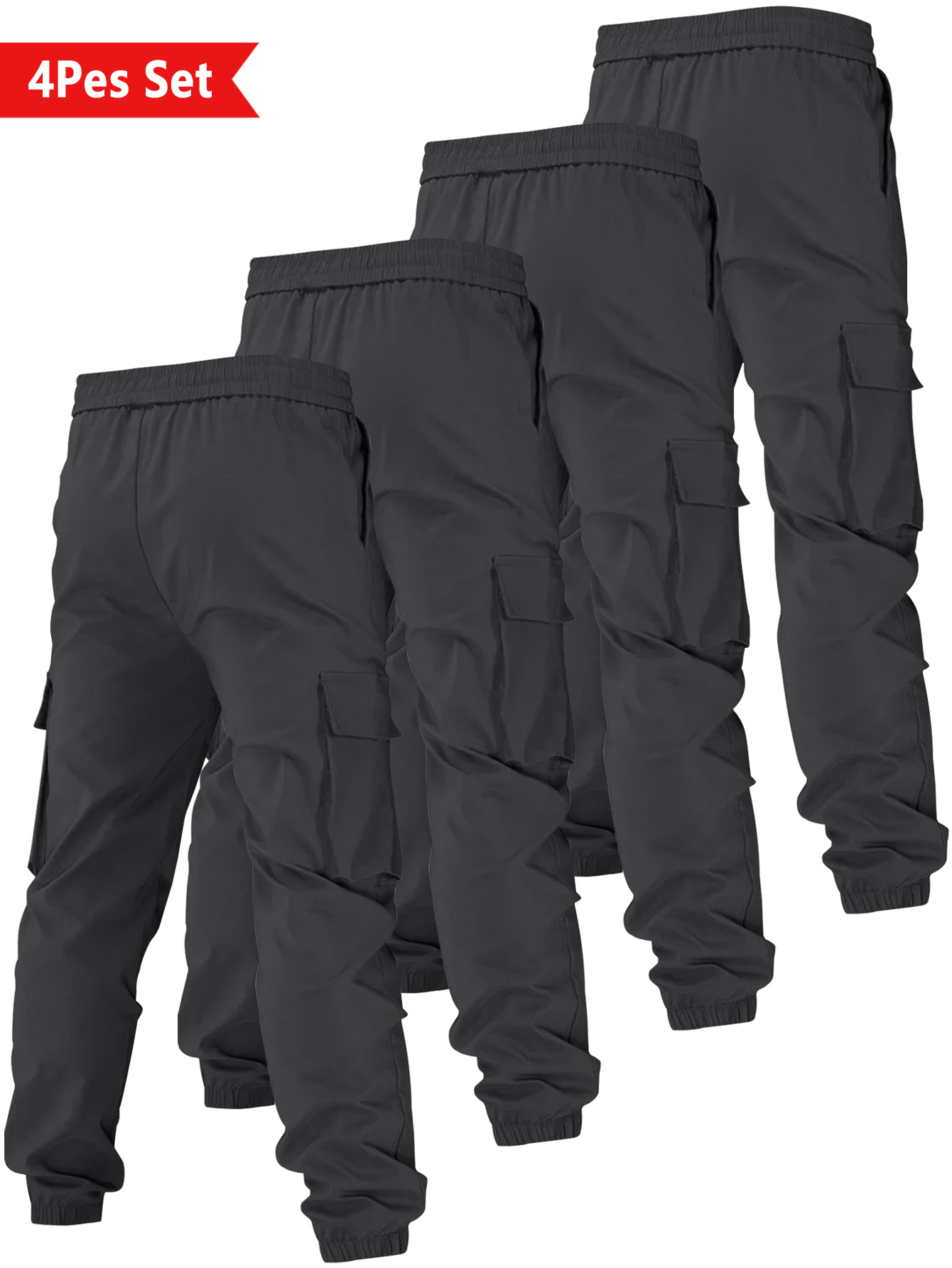 4-Counts Urban-Style Simple Men’S Trendy Brand Comfortable Outdoor Commuting Cuffed Pants, with a European Trendy Sense, Stylish And Cool, And Multi-Functional Work Pants.