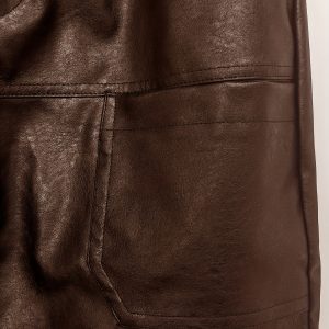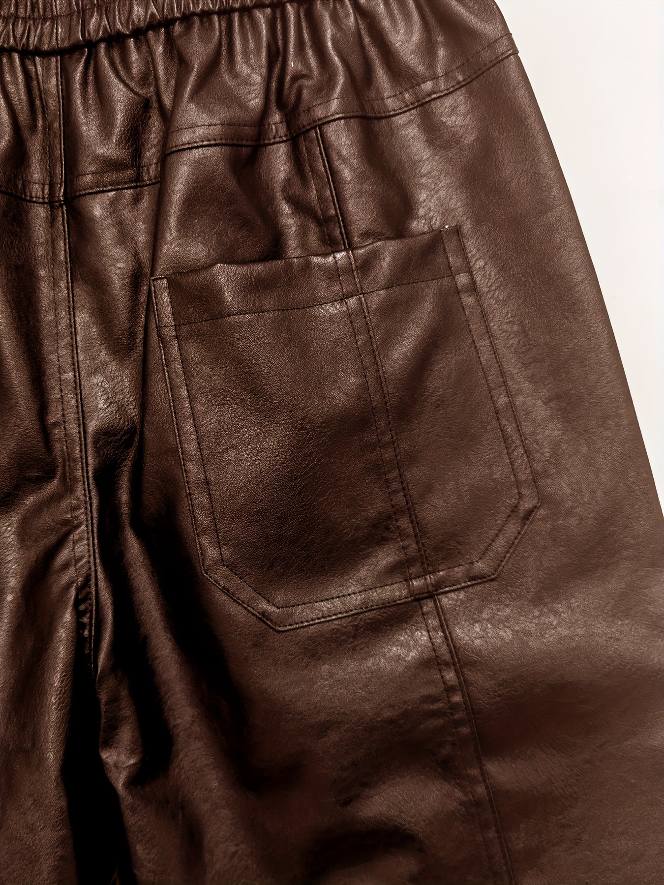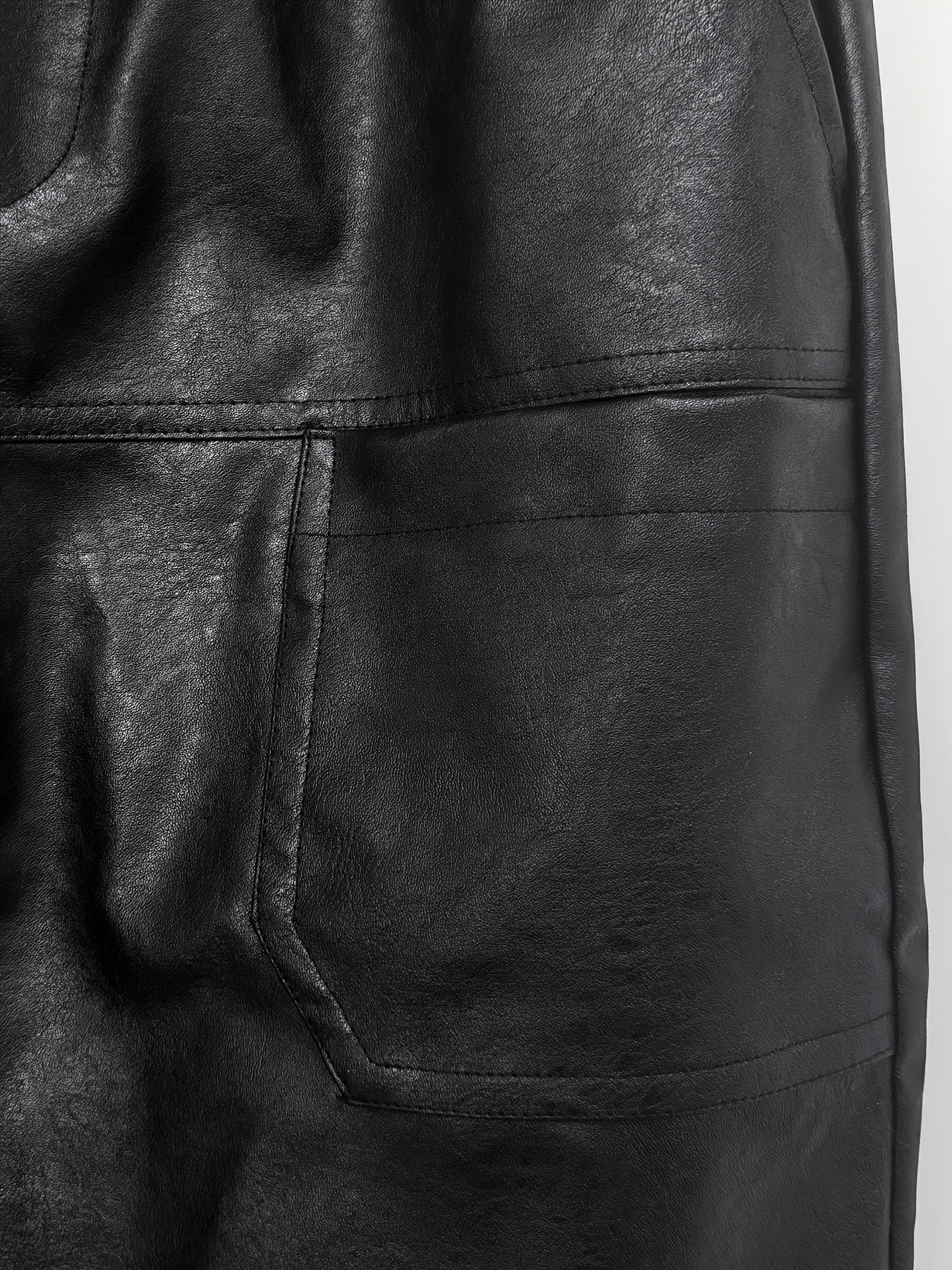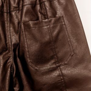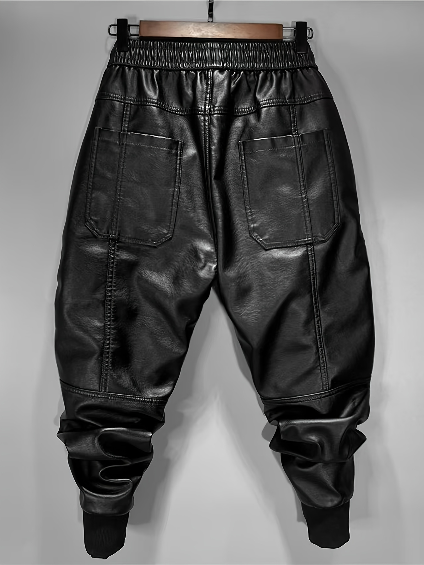 829 Men’s Fashion Casual Three-Dimensional Cut Personality Front Pocket Drawstring Elastic Waist PU Leather Pants Casual Trousers