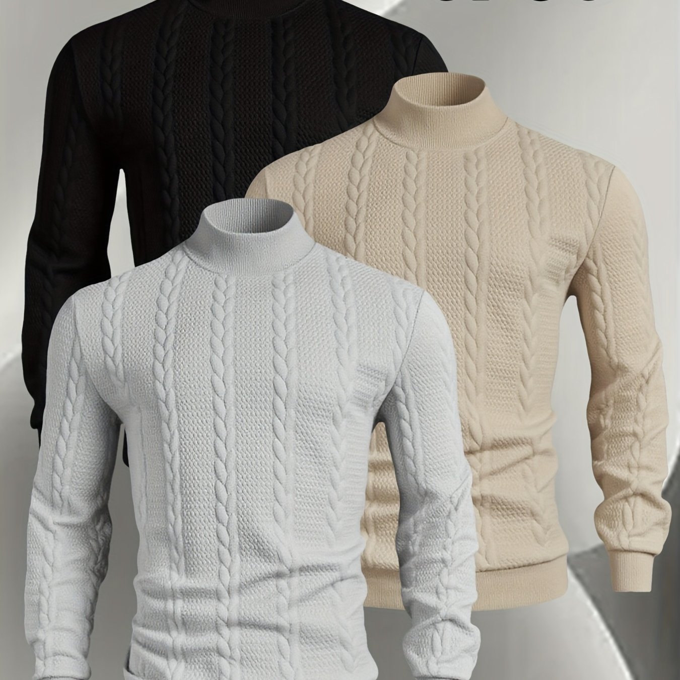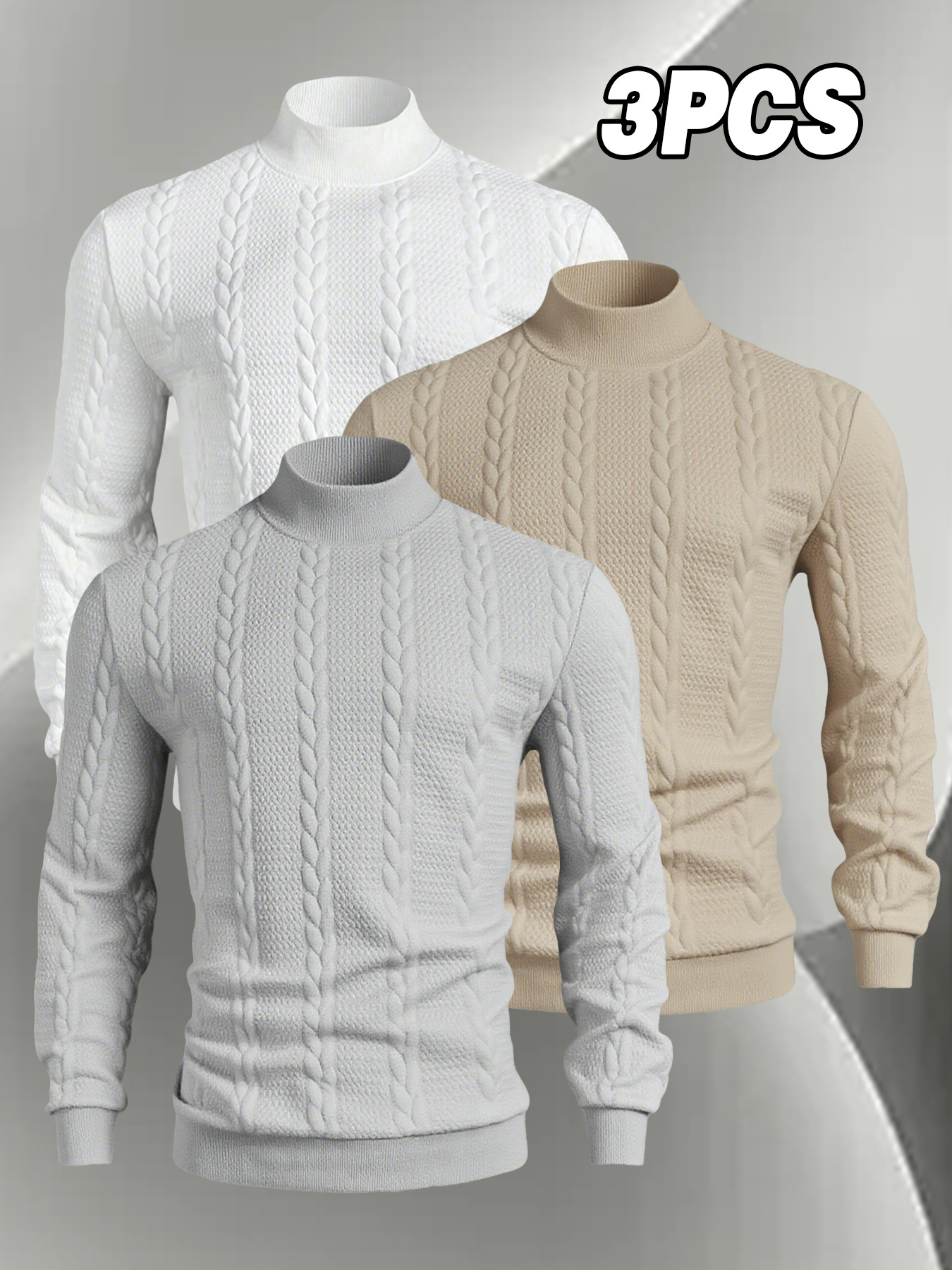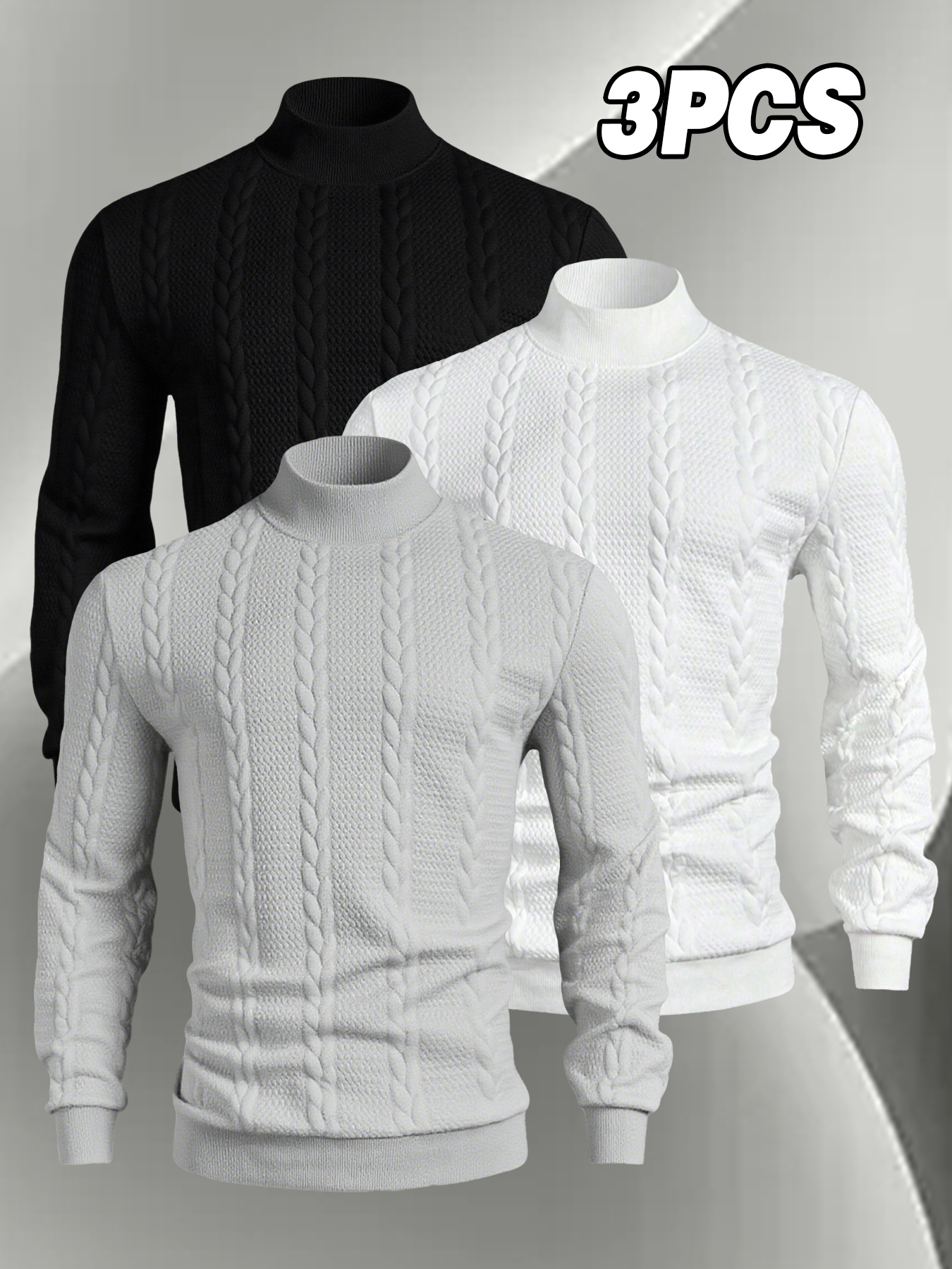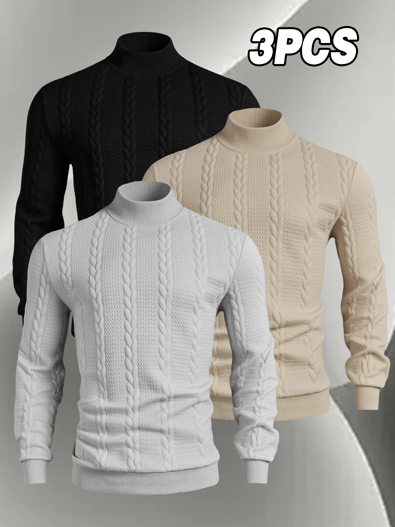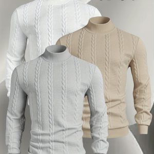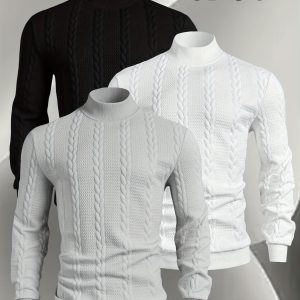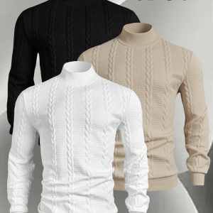 A Set of Three Men’S Small Stand-Collar Knitted Long-Sleeve Pullovers, Comfortable And Soft for Autumn And Winter, Featuring a Casual Round Neck Design. This Stylish And Versatile Top Has Ribbed Cuffs, Making It Suitable for Outdoor Activities