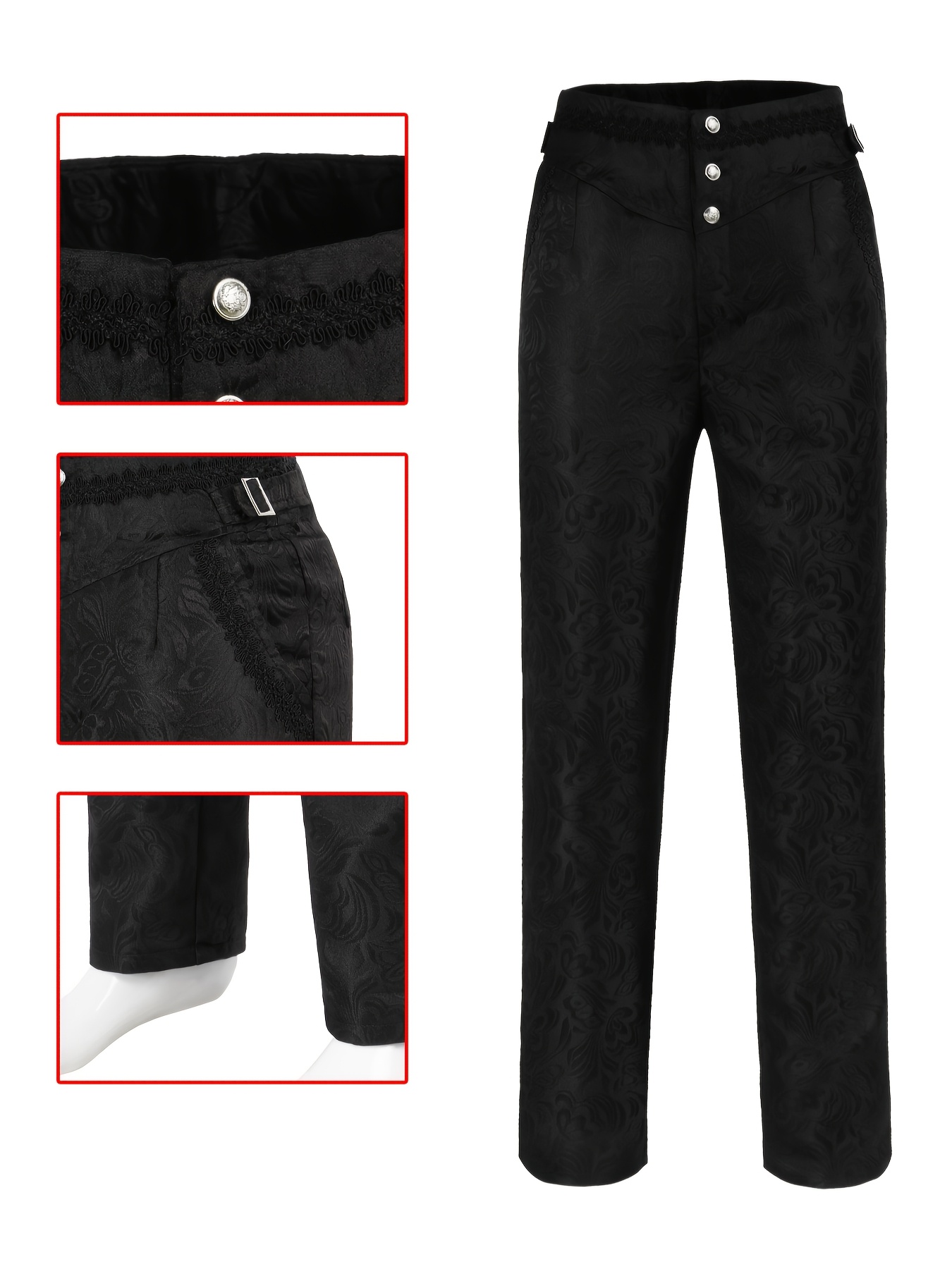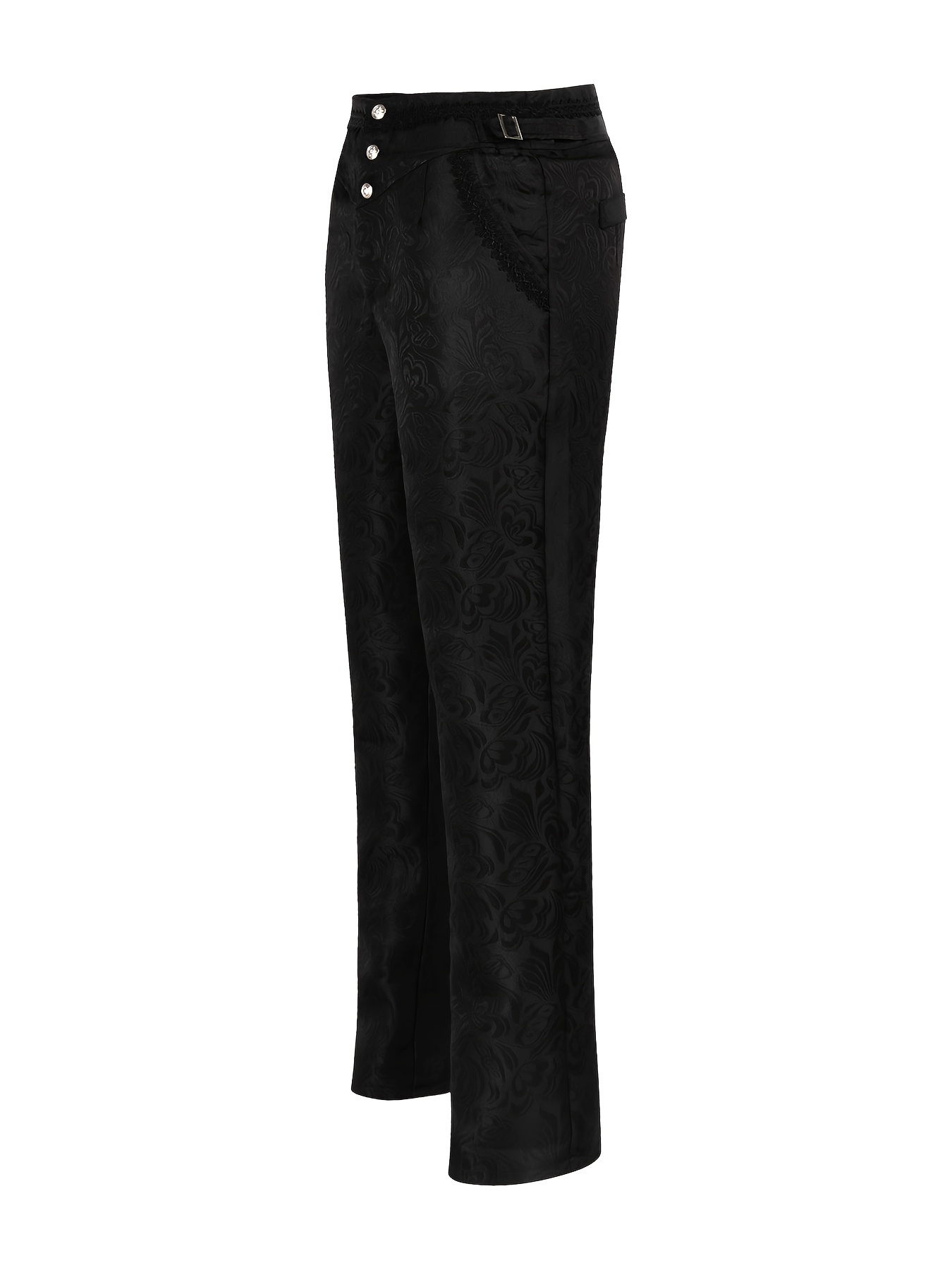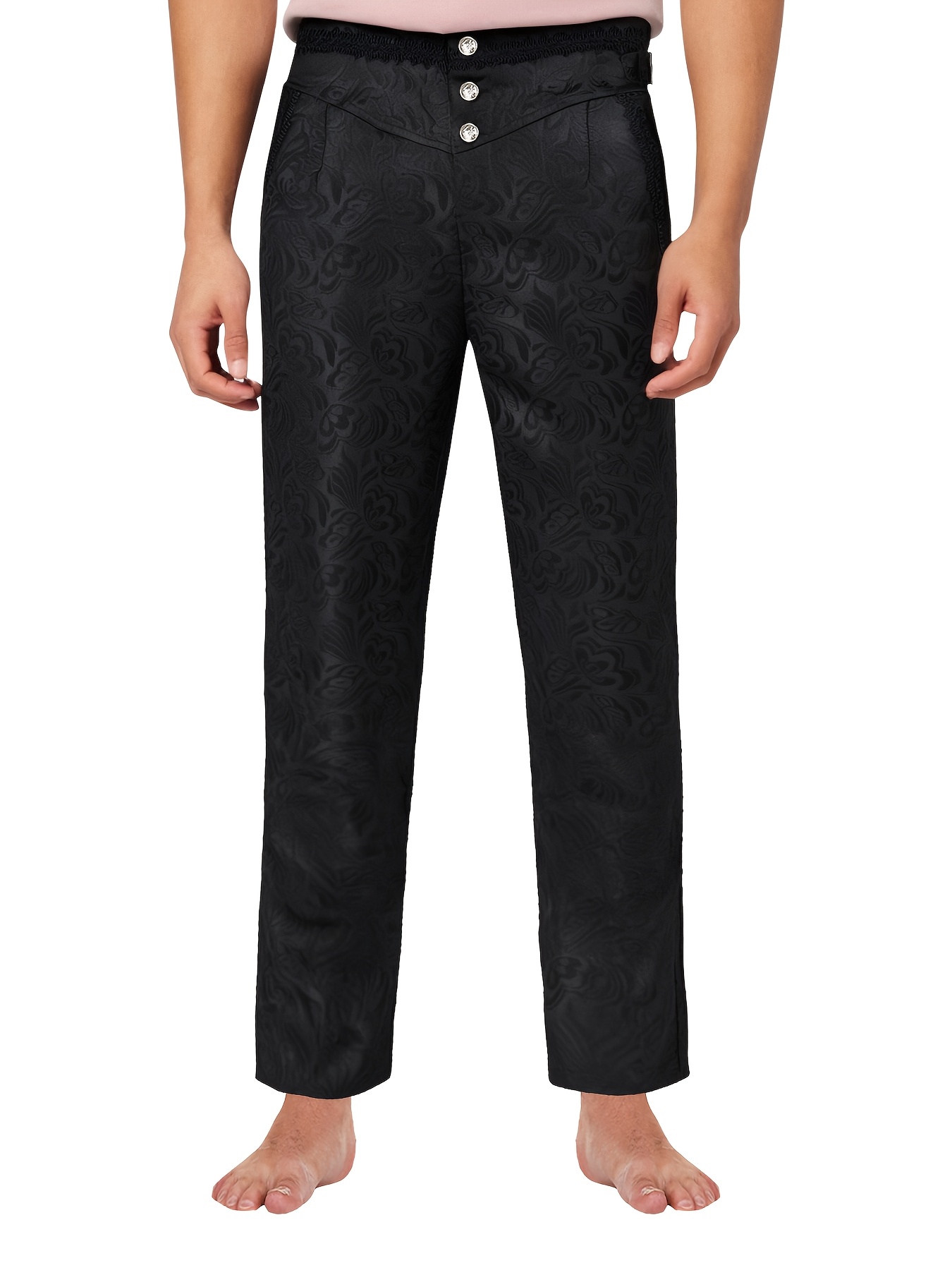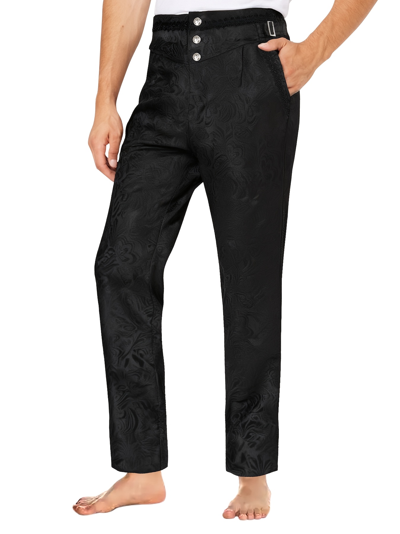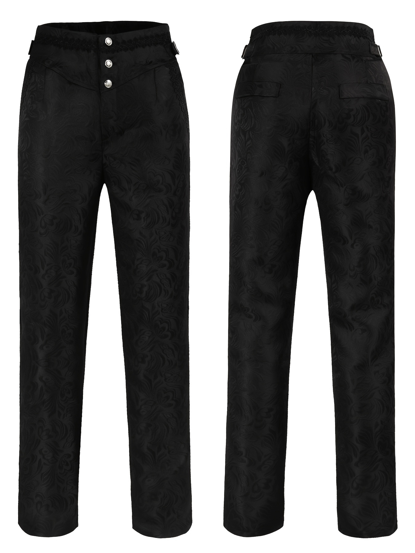 - Gothic Style High-Waist Slim-Fit Pants | Vintage Floral Jacquard, No Belt, Button Details, Perfect for Men