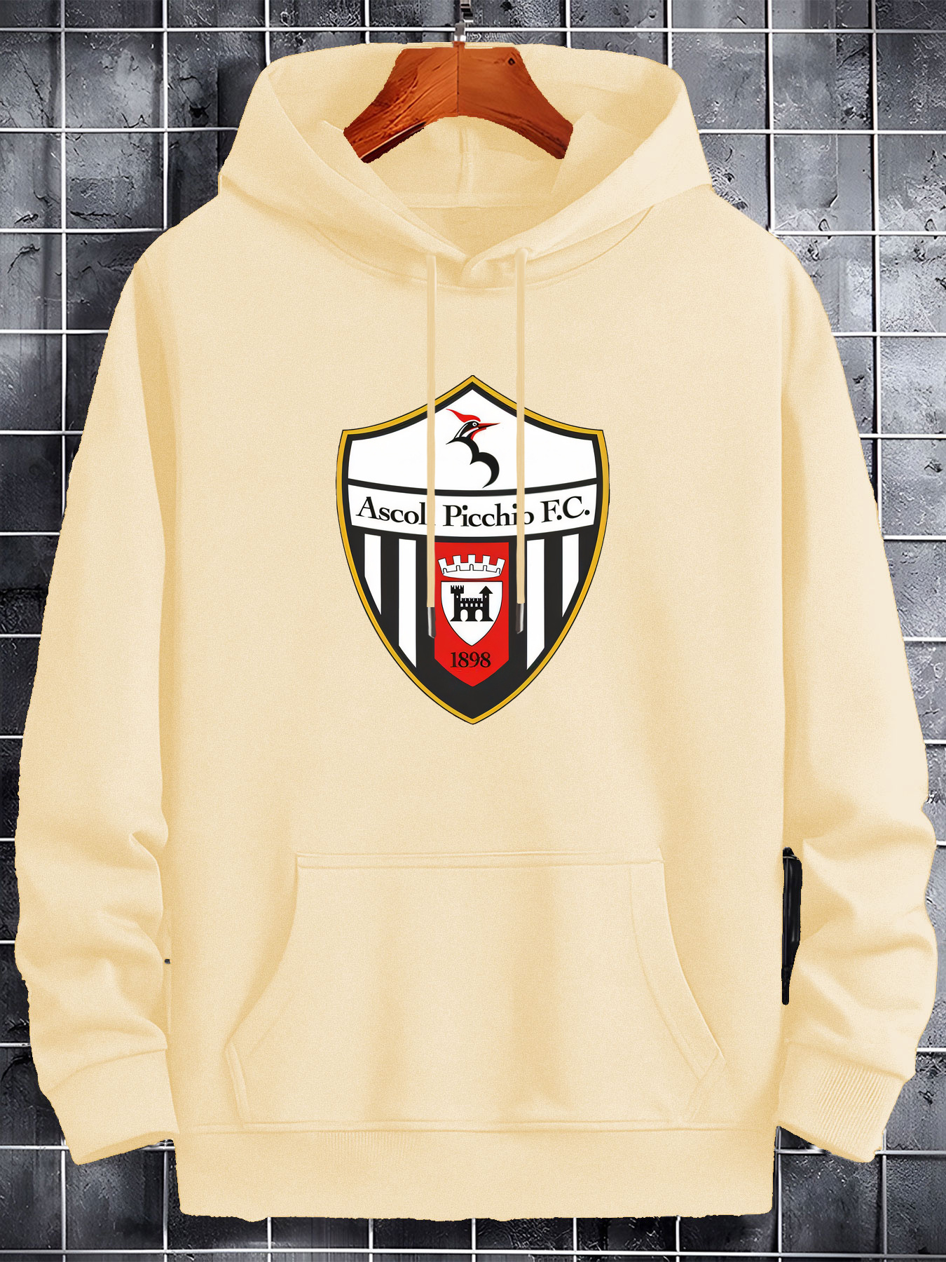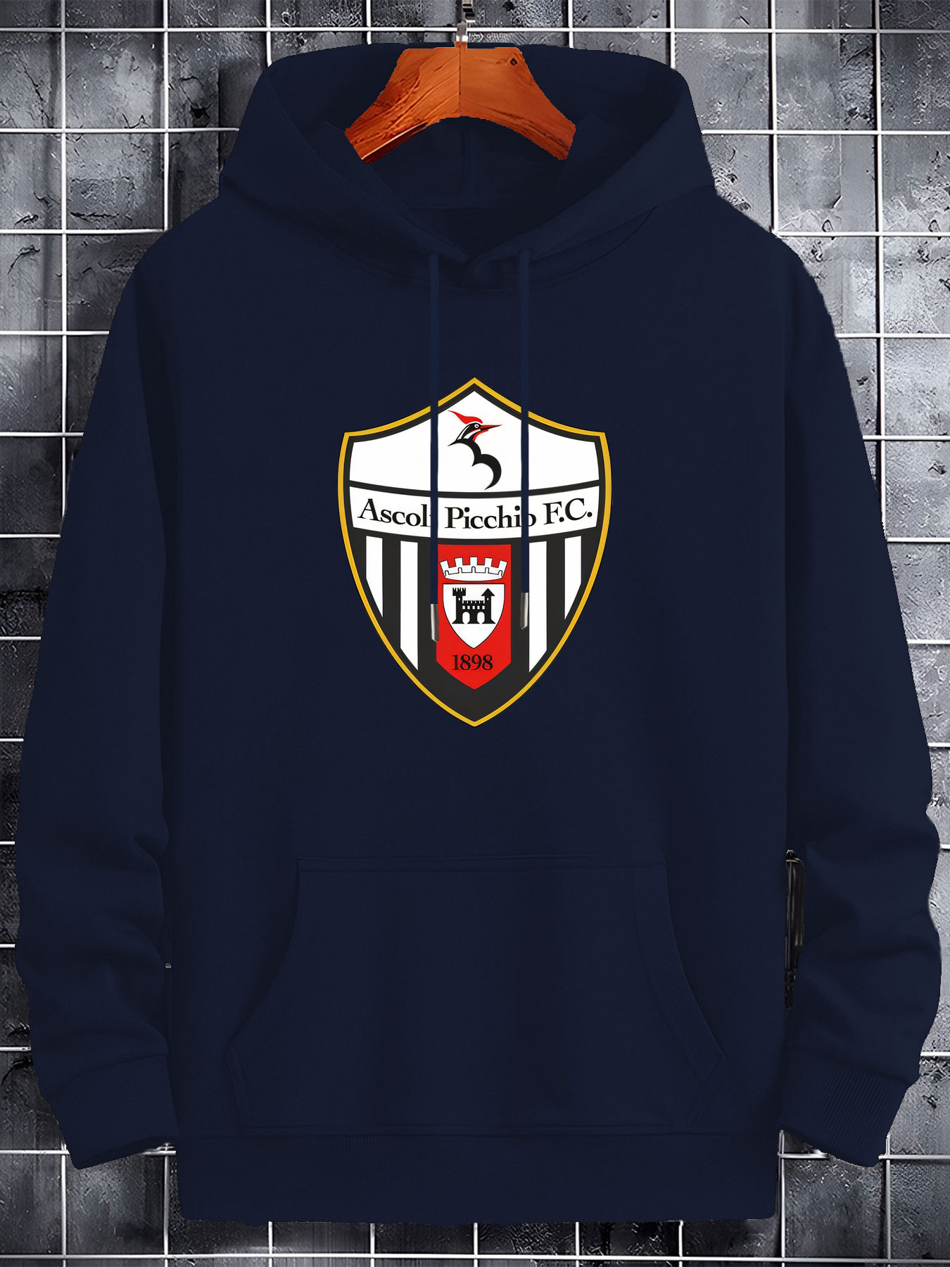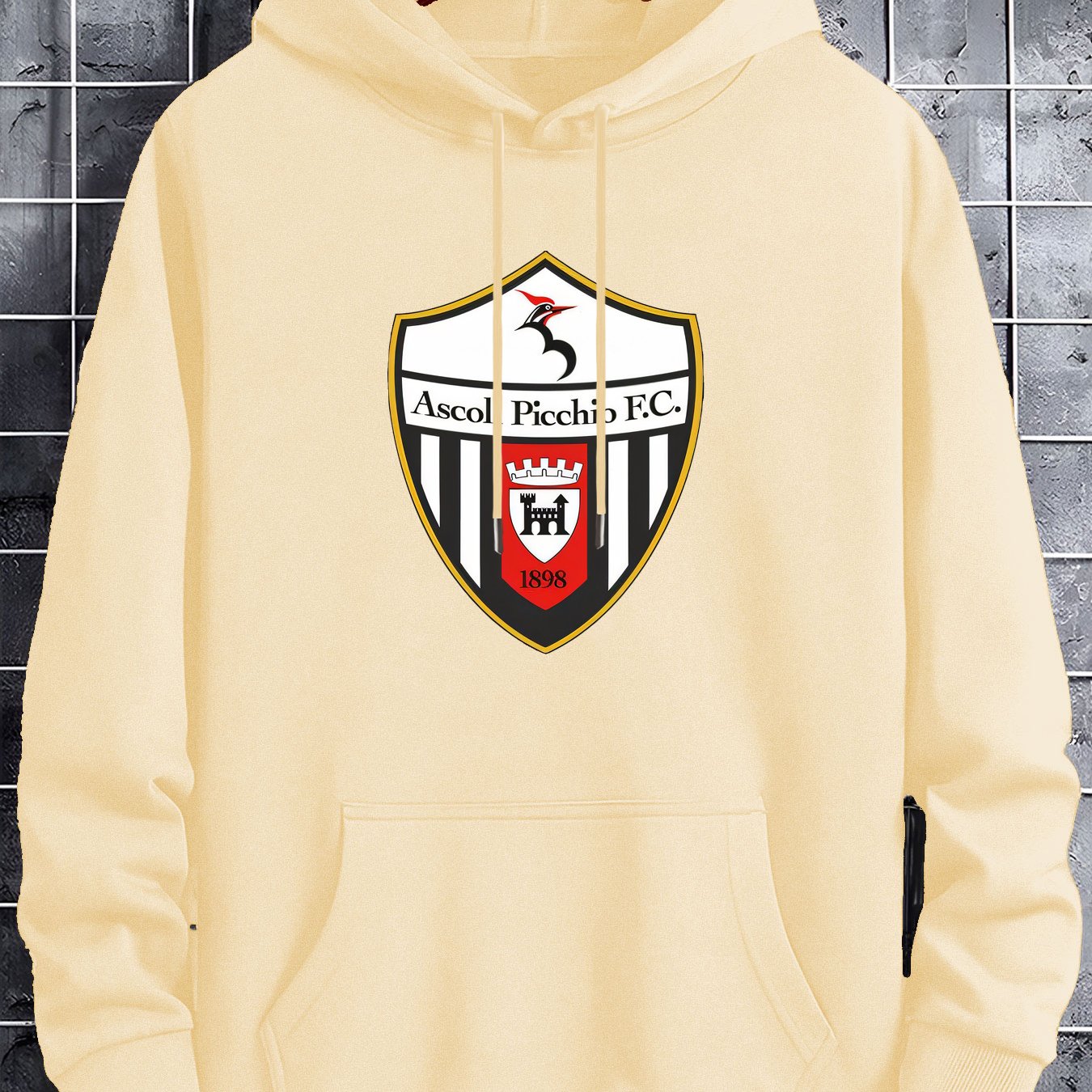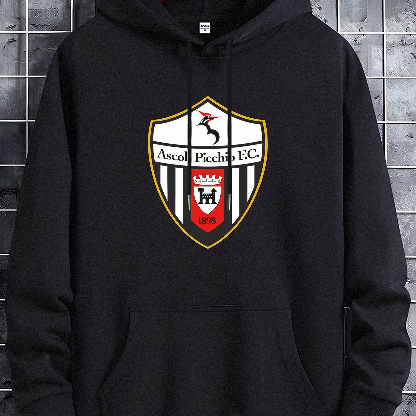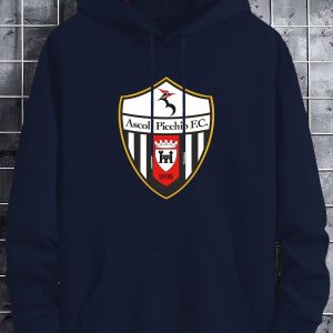 Men’S Casual Black Hoodie with Ascoli Picchio F.C. Soccer Club Graphic – Soft Polyester Blend, Long Sleeve Pullover with Front Pockets, Perfect for Fall & Winter, Allseason Pullover|Hooded Pullover|Soft Polyester Blend