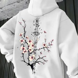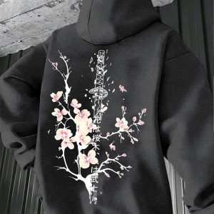 Be the first to review “Men’s Casual Chinese-style Plum Blossom Print Vintage Hoodie, Polyester, Knitted Fabric with Kangaroo Pocket” Cancel reply