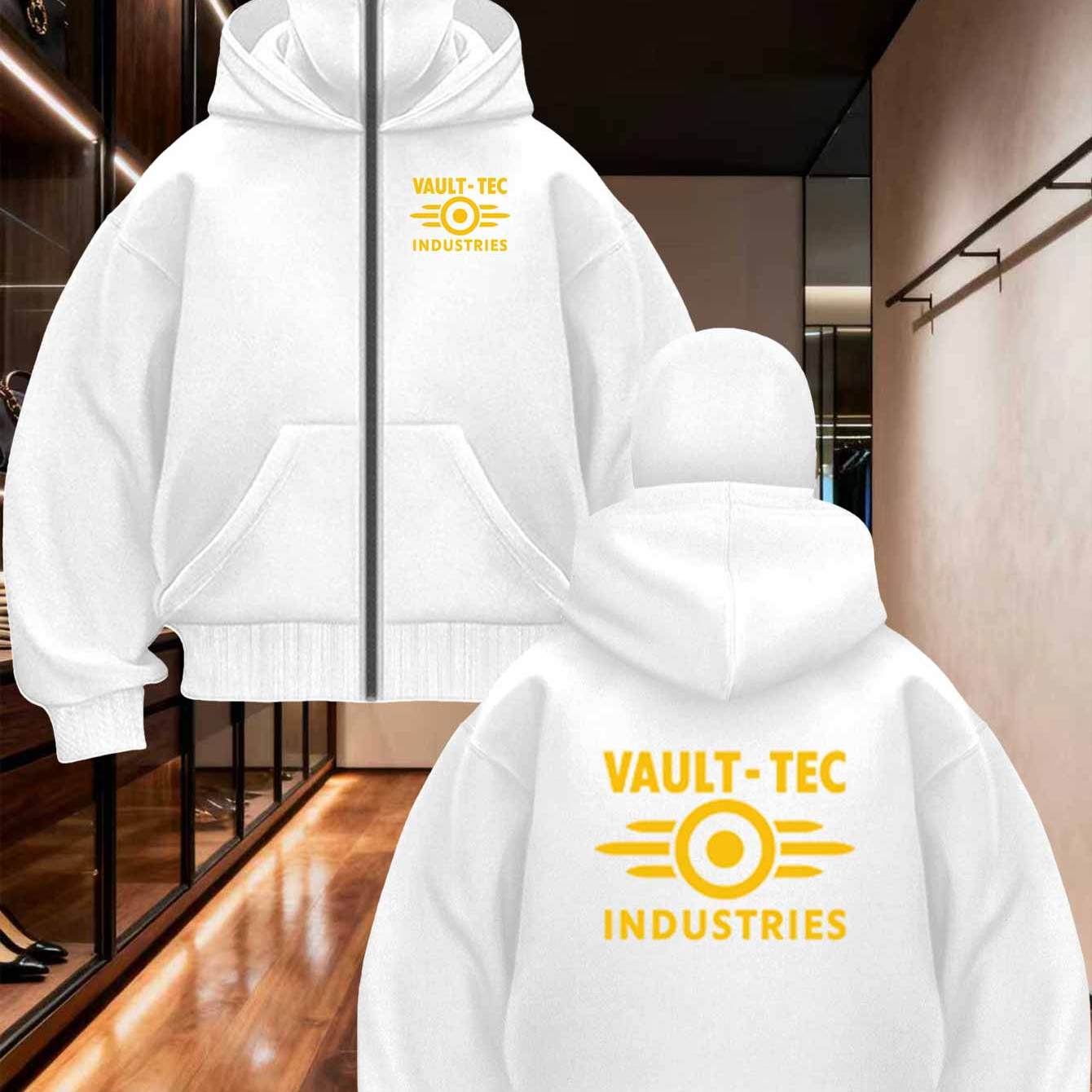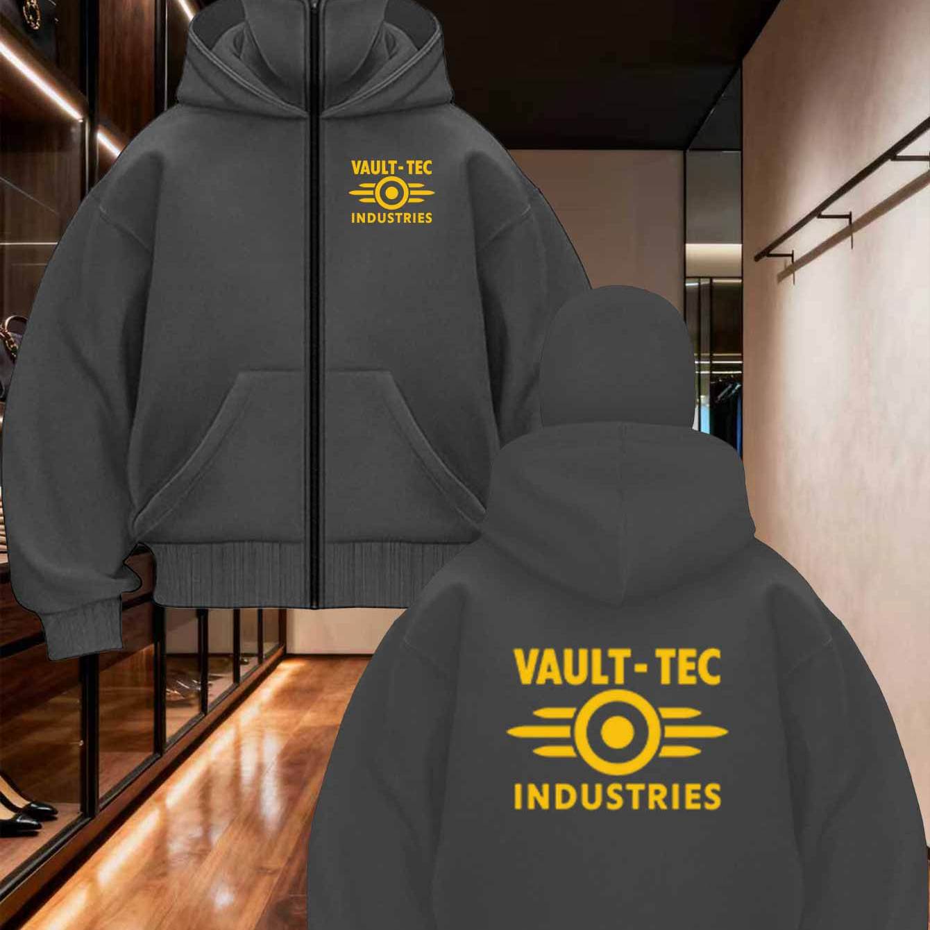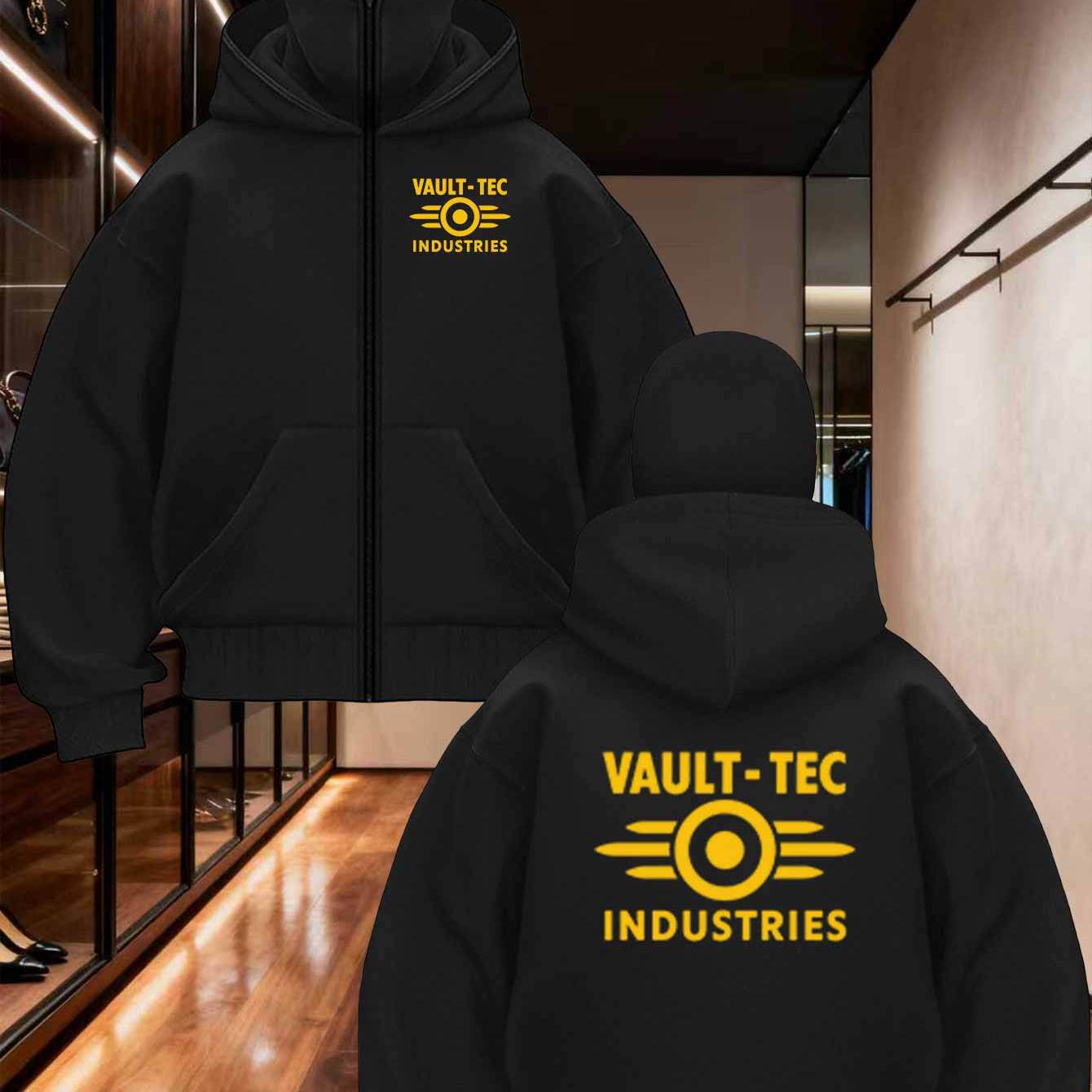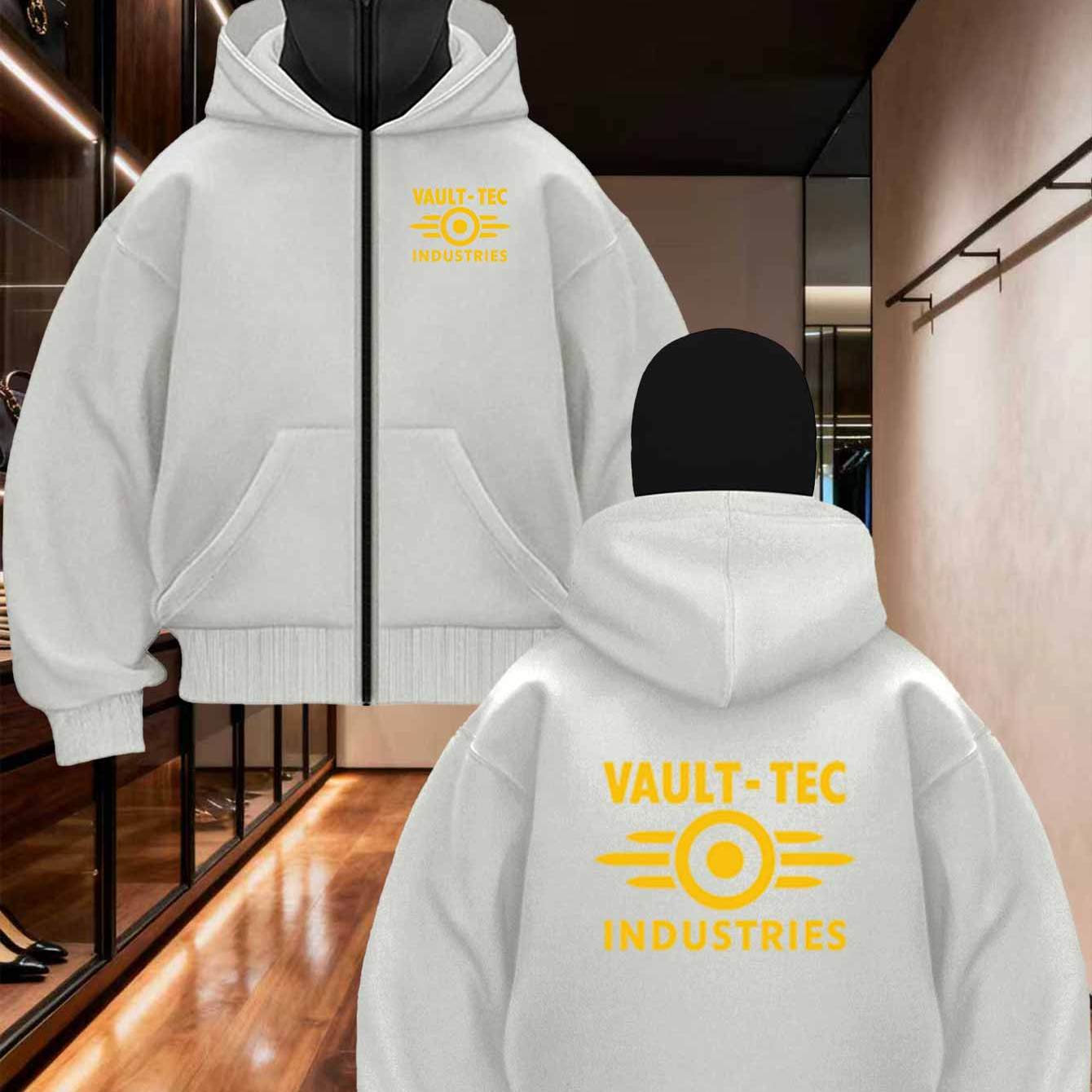 Men’s Classic Winter Autumn Double Layer Hoodie Vault-Tec Industries Print Design Fashion Contrast Color Zipper Cardigan Casual Warm Long Sleeve Top Loose Fit Versatile Youth Trendy Outerwear