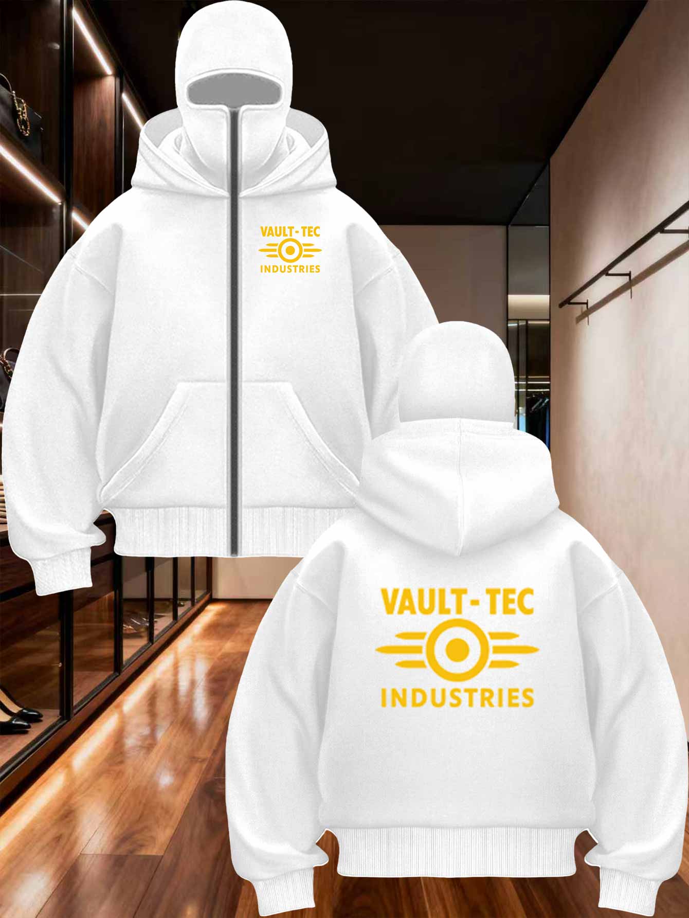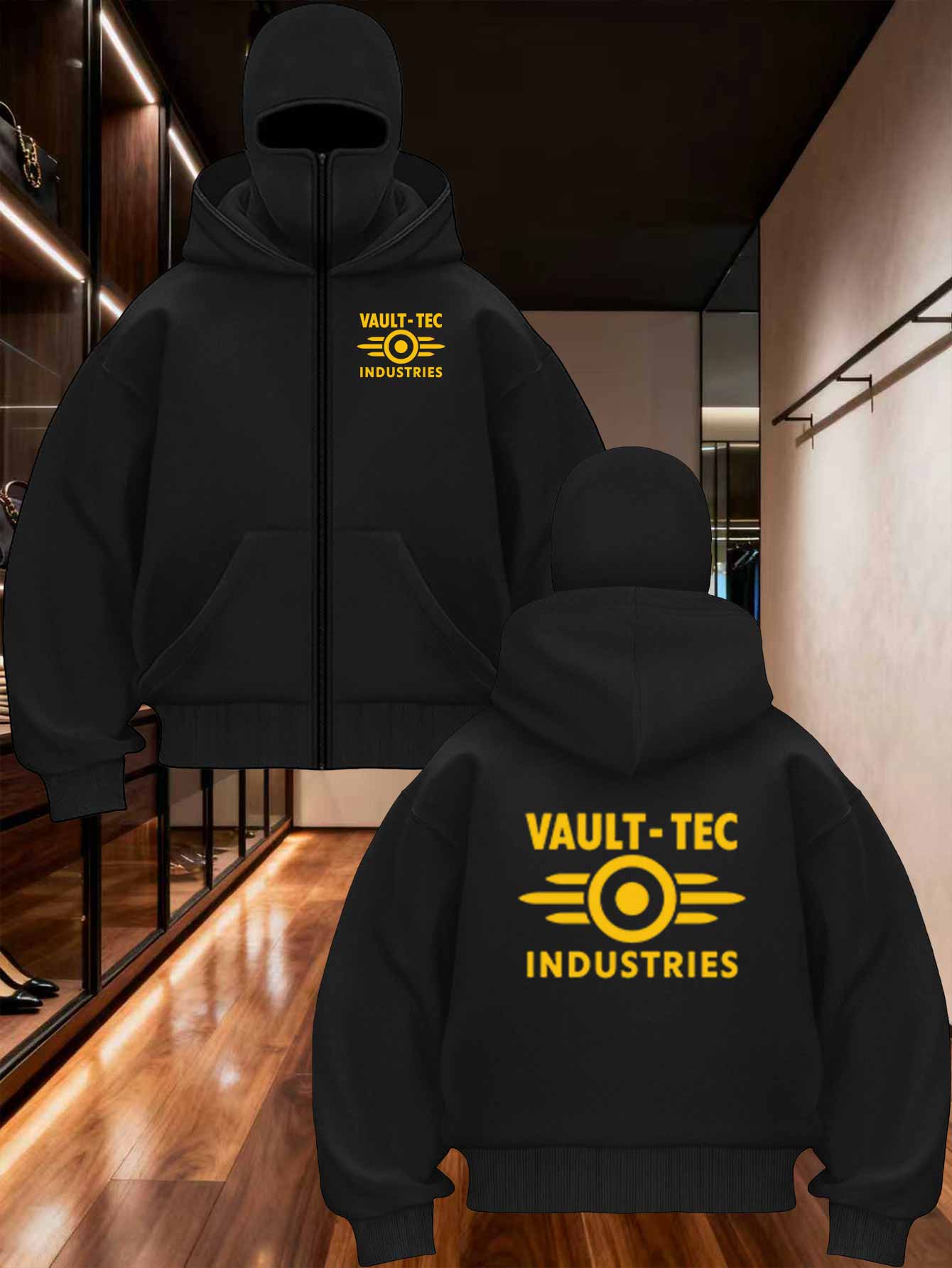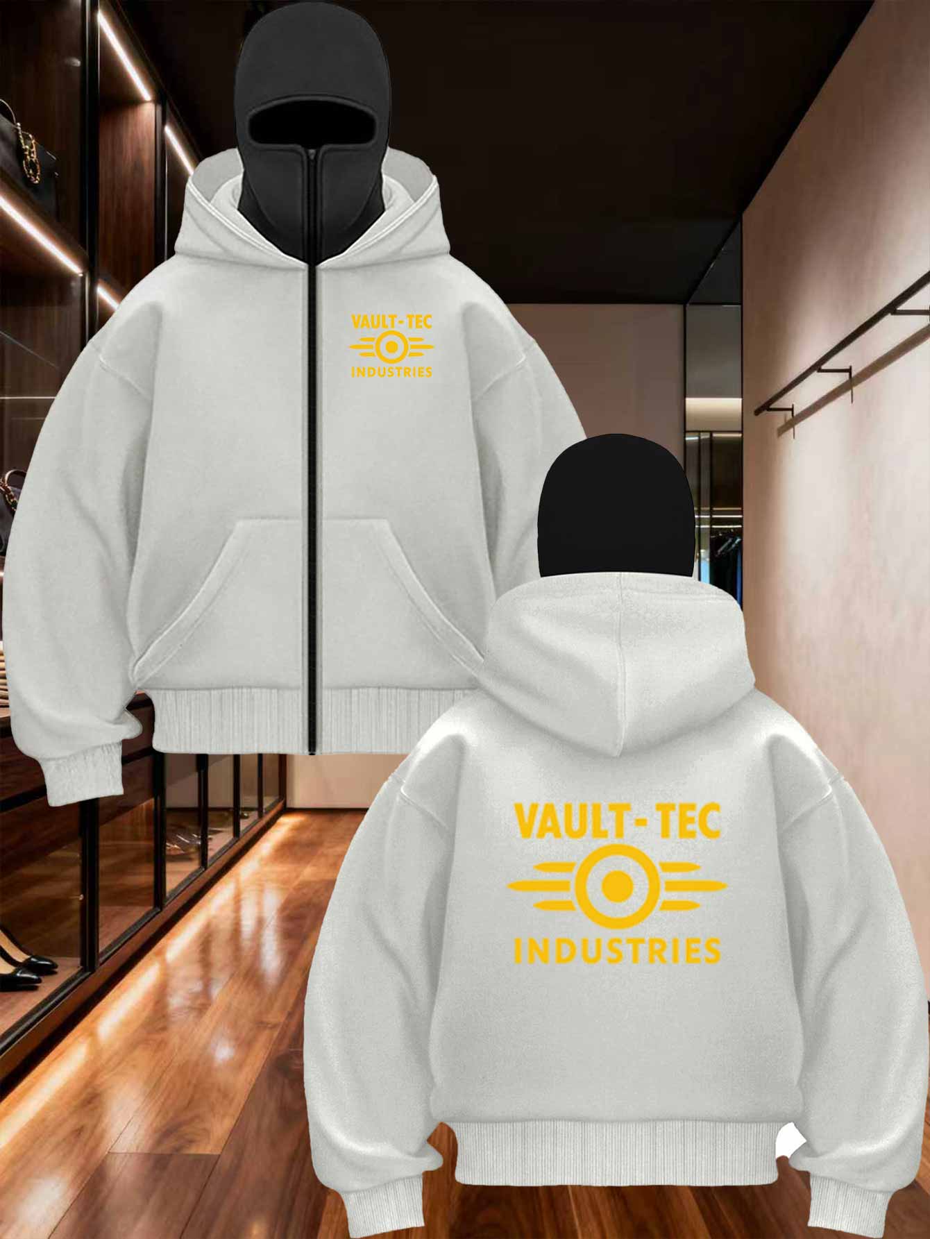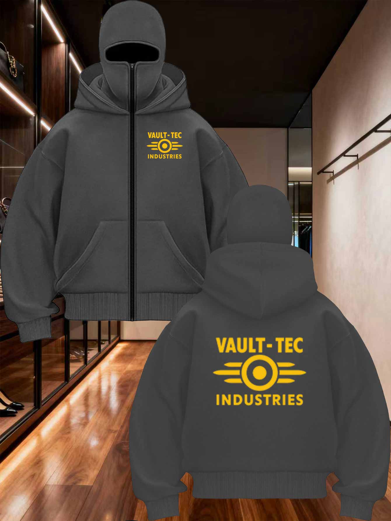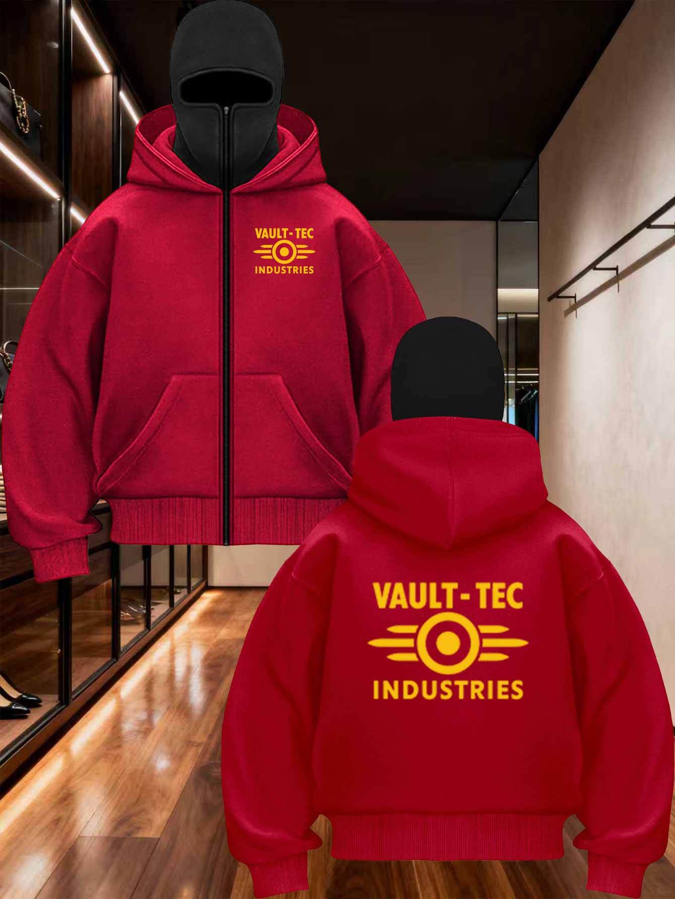 Men’s Classic Winter Autumn Double Layer Hoodie Vault-Tec Industries Print Design Fashion Contrast Color Zipper Cardigan Casual Warm Long Sleeve Top Loose Fit Versatile Youth Trendy Outerwear