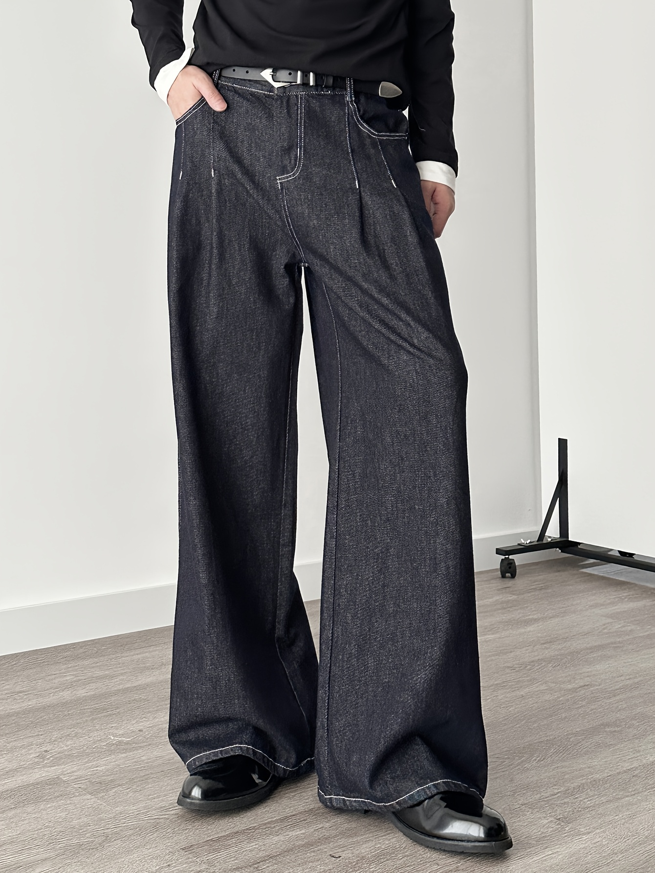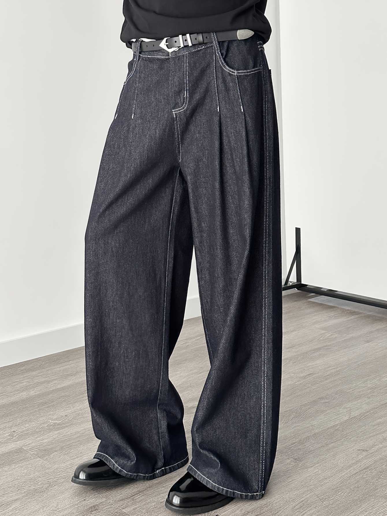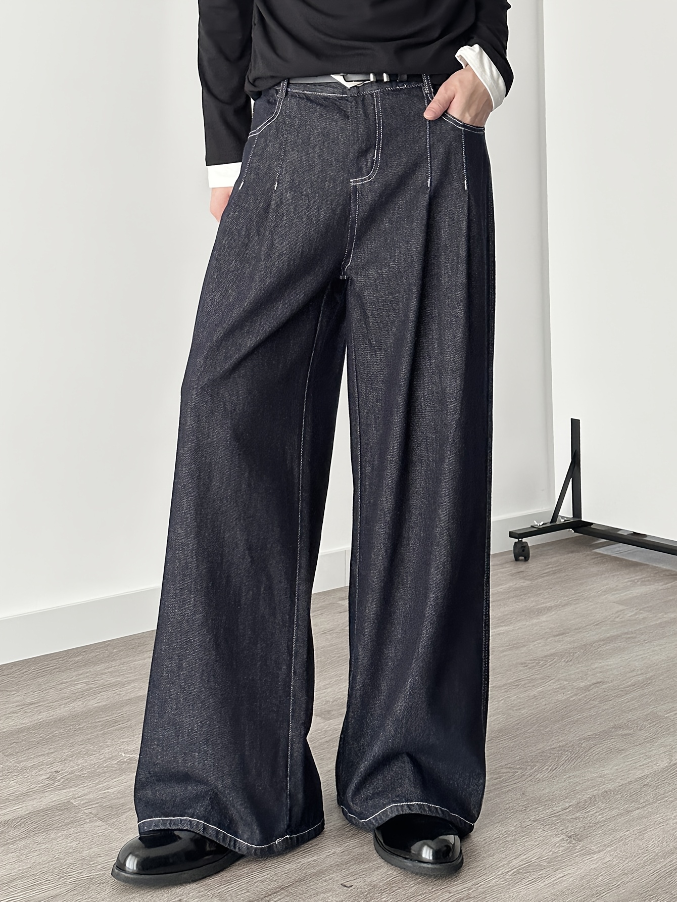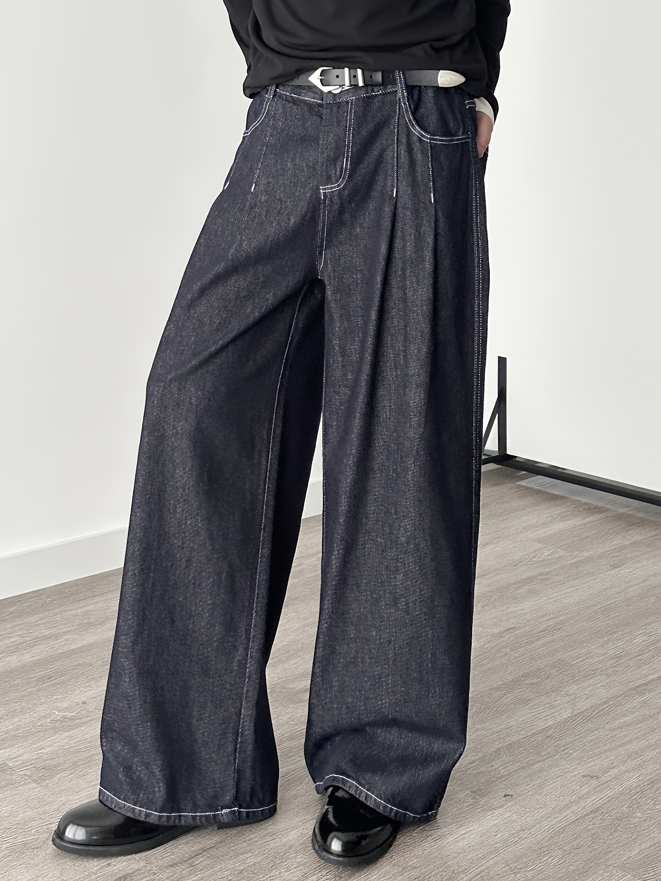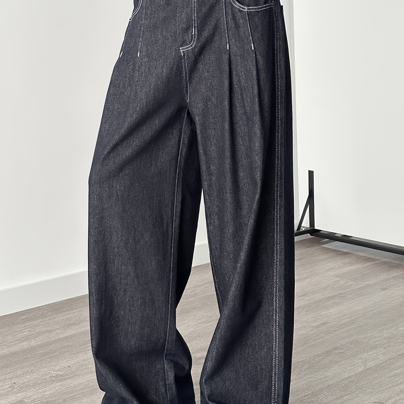 - Men’s Imitation Denim Suit Pants, Belt Not Included, Loose Straight-Leg Trousers, Textured Pants, Do Not Machine Wash, for Office Commuting Wear