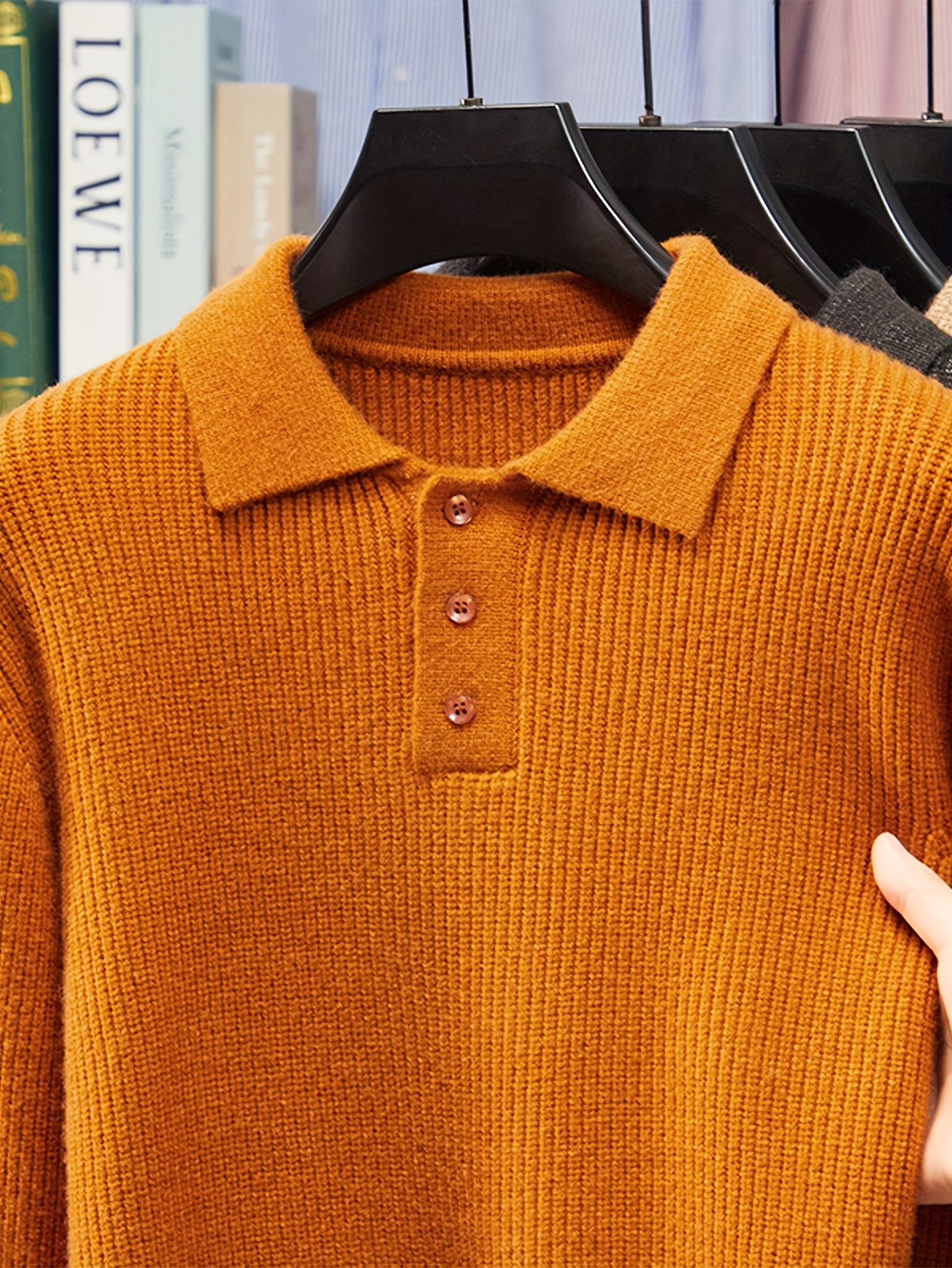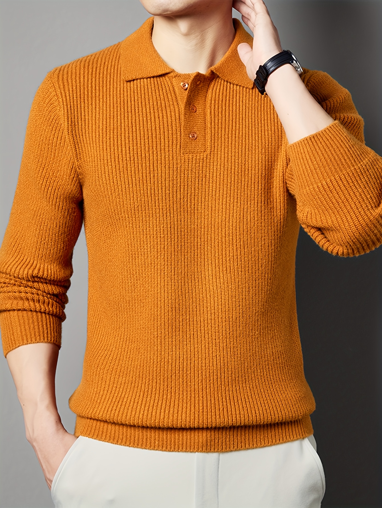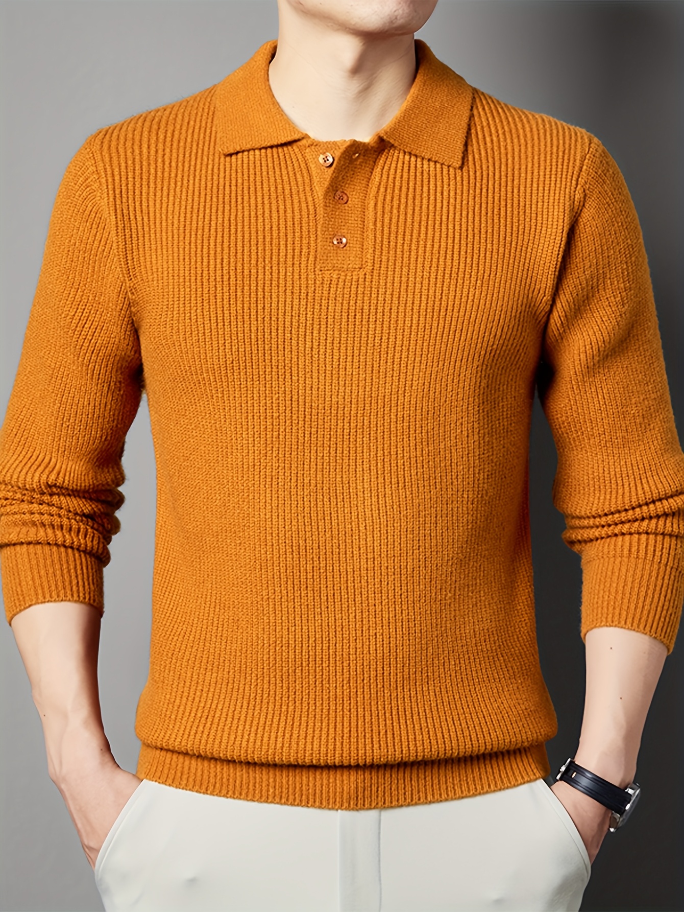 - Men’s Solid Color Casual Loose-Fitting Authentic New Style Long-Sleeve Polo Knit Sweater for Autumn And Winter, Seagull Base Layer Sweater