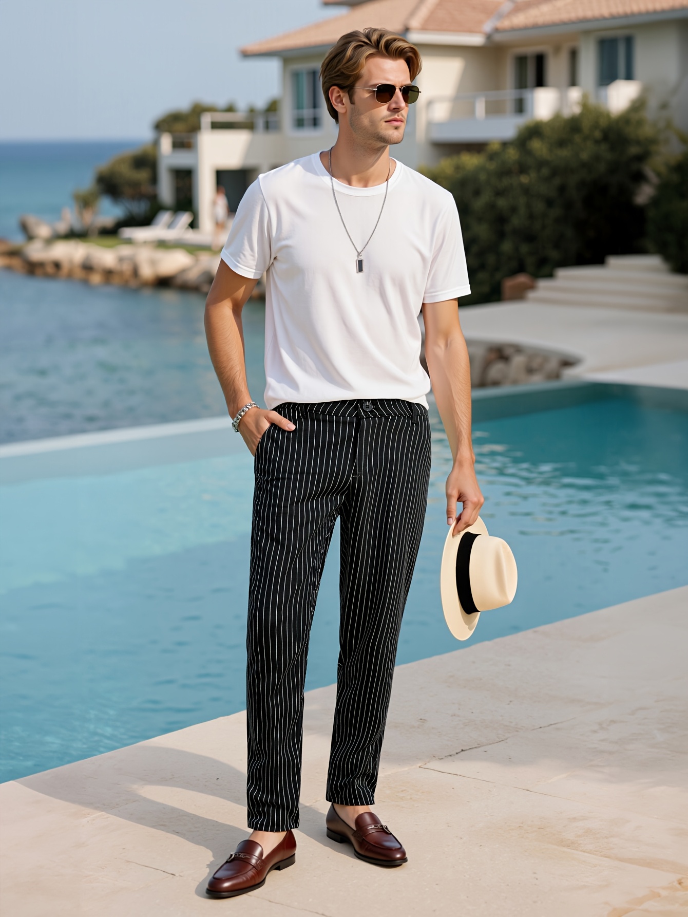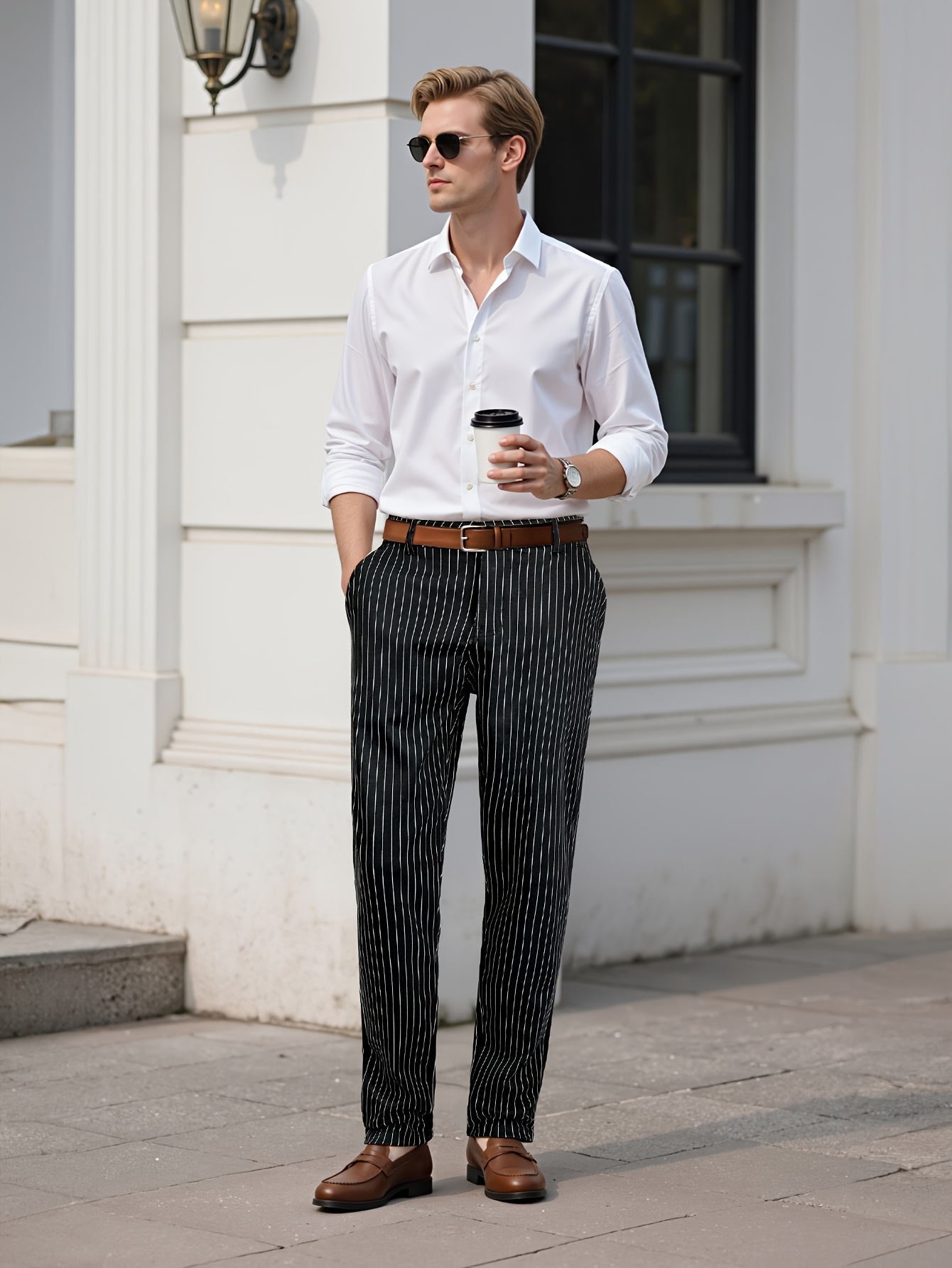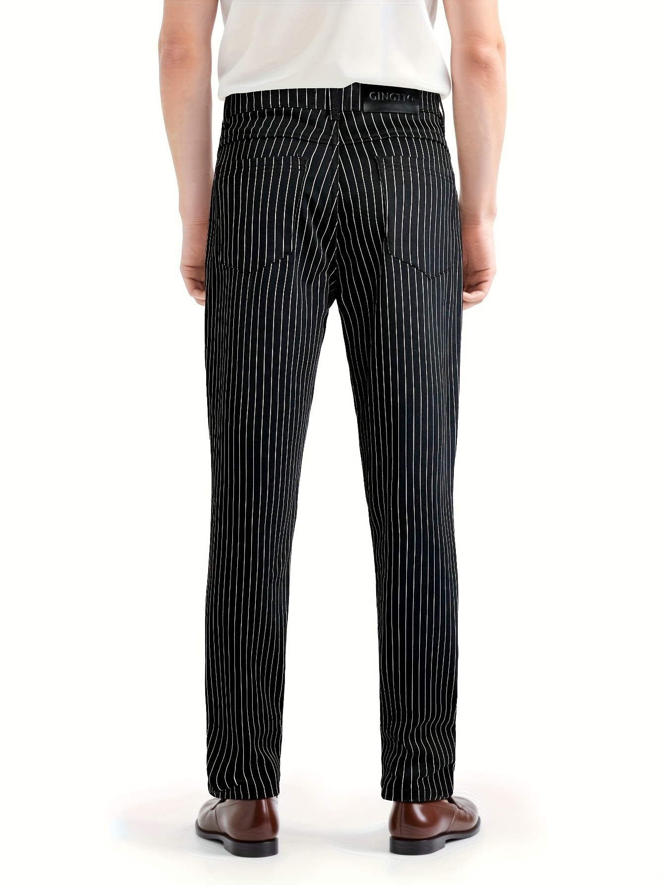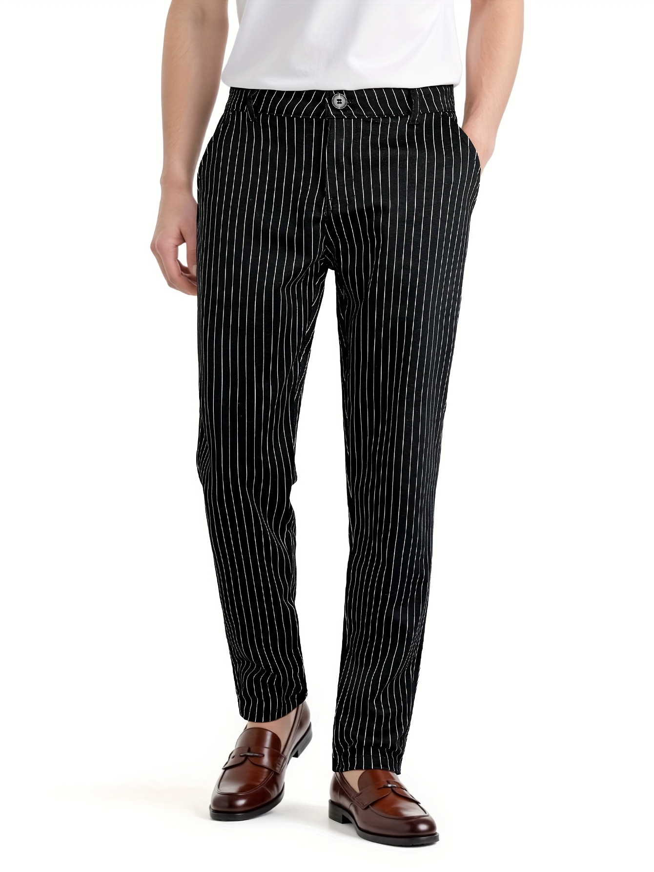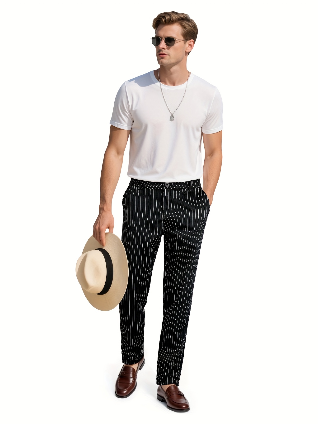 Men’S Tailored Black Striped Suit Pants, Perfect for Casual Everyday Wear