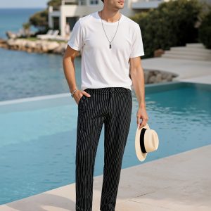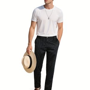 - Men’S Tailored Black Striped Suit Pants, Perfect for Casual Everyday Wear