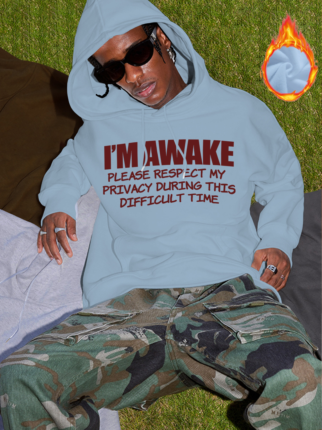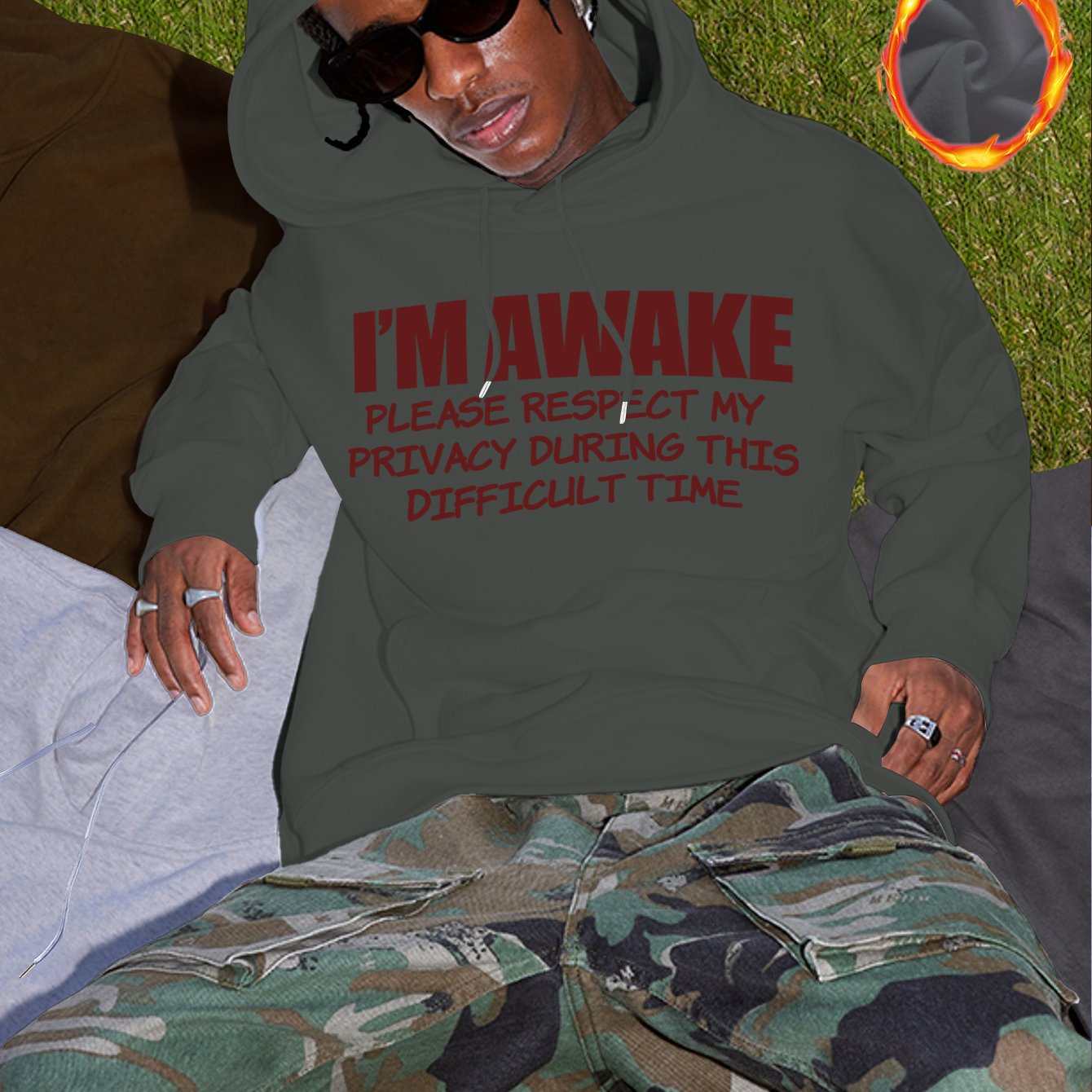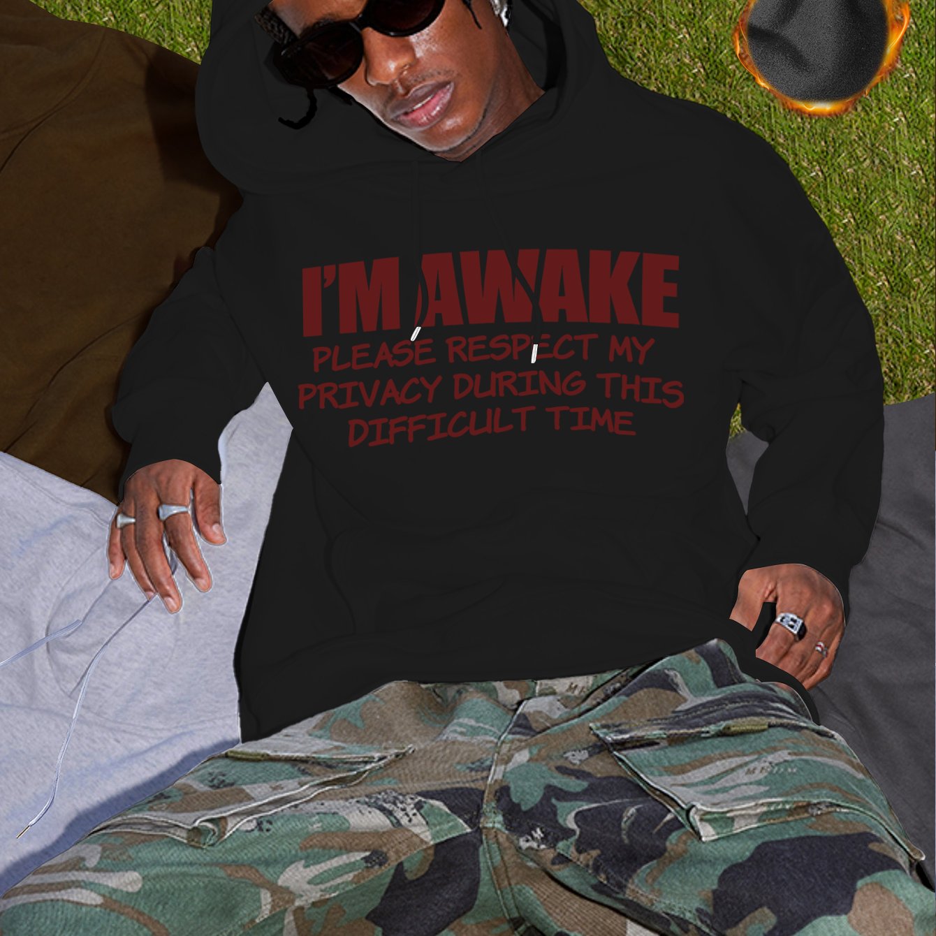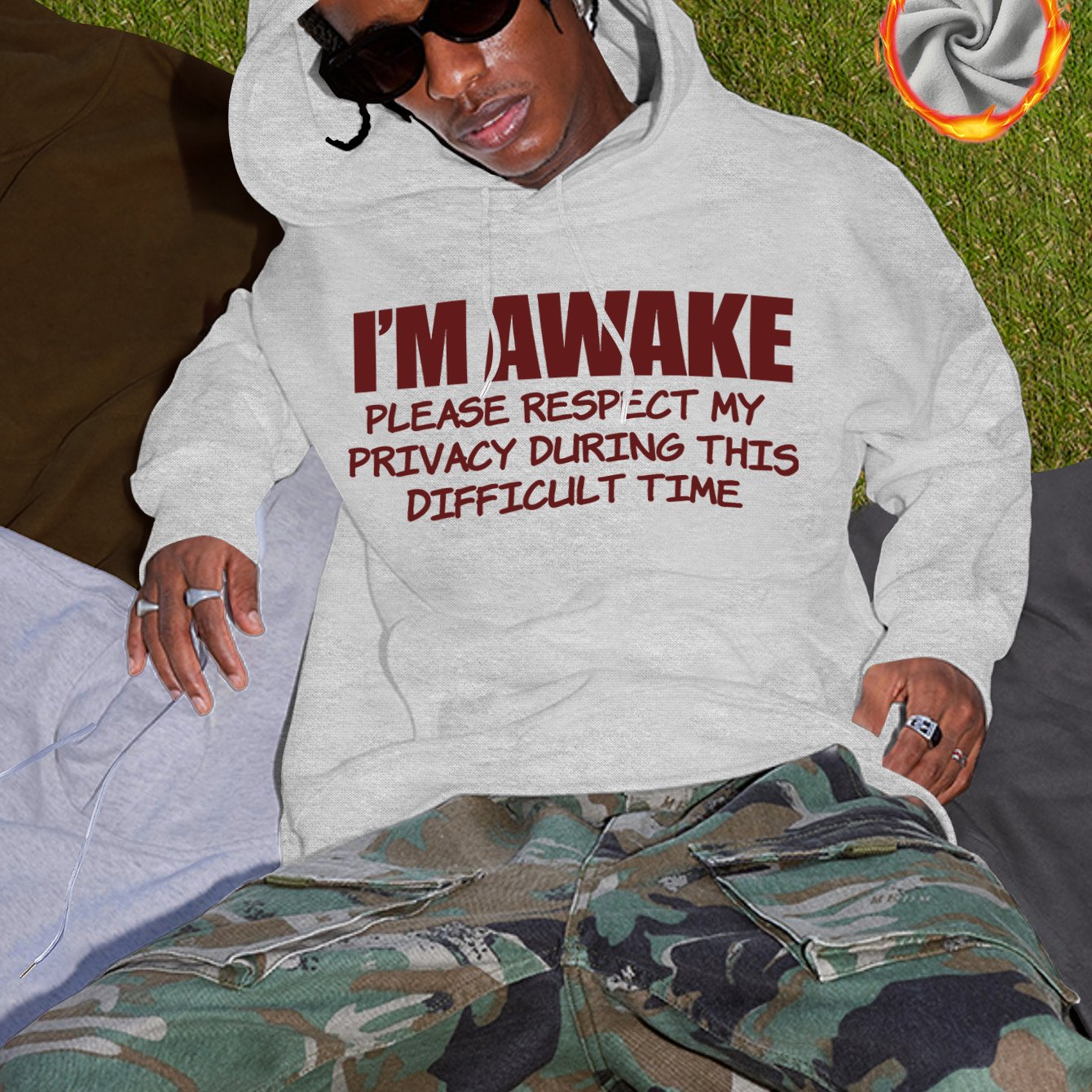 Privacy Message Lettering Hoodie for Cold Weather – Men’s Oversized Hooded Sweatshirt with