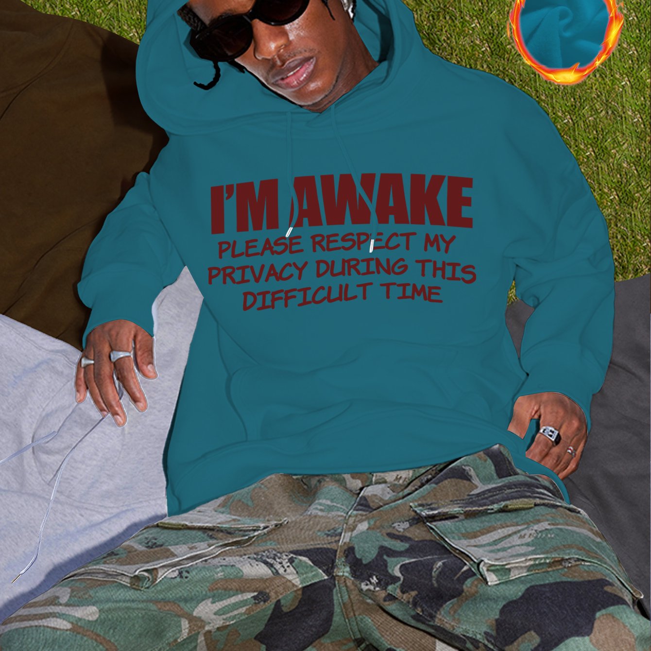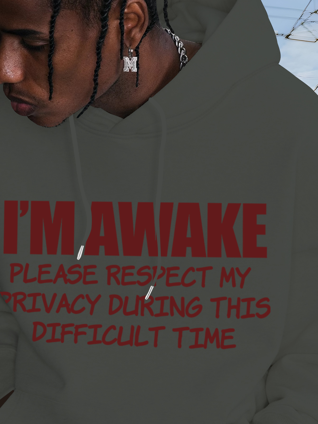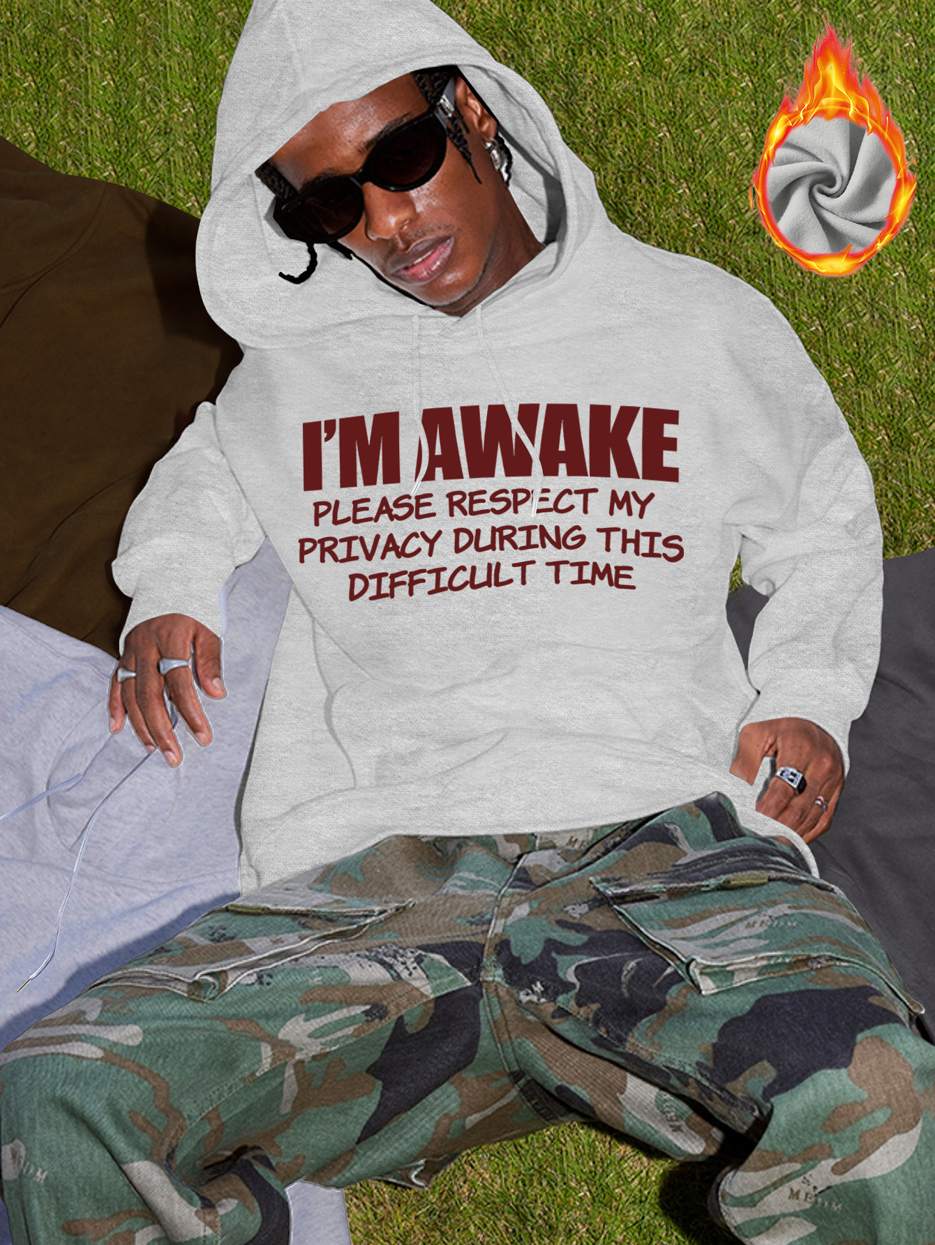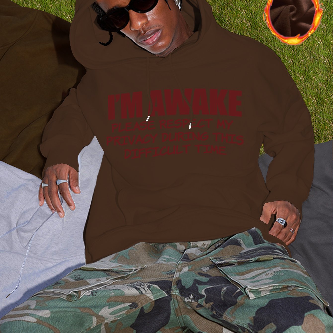Privacy Message Lettering Hoodie for Cold Weather – Men’s Oversized Hooded Sweatshirt with