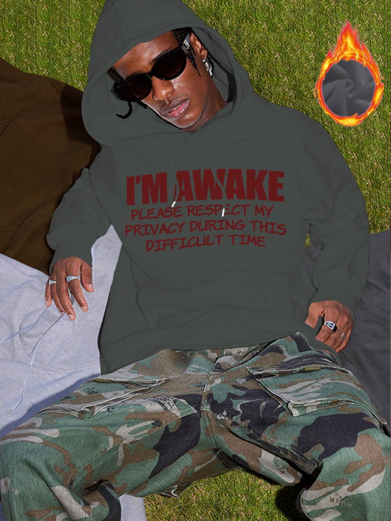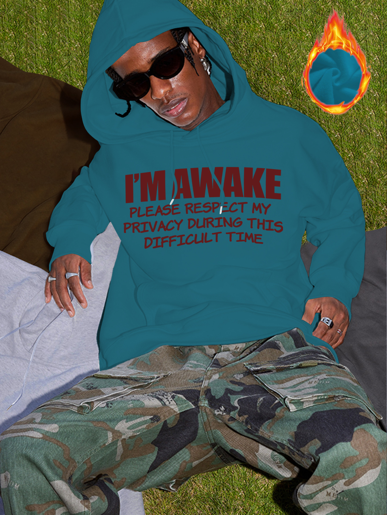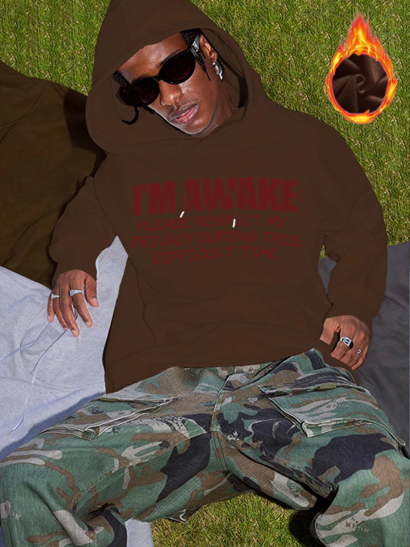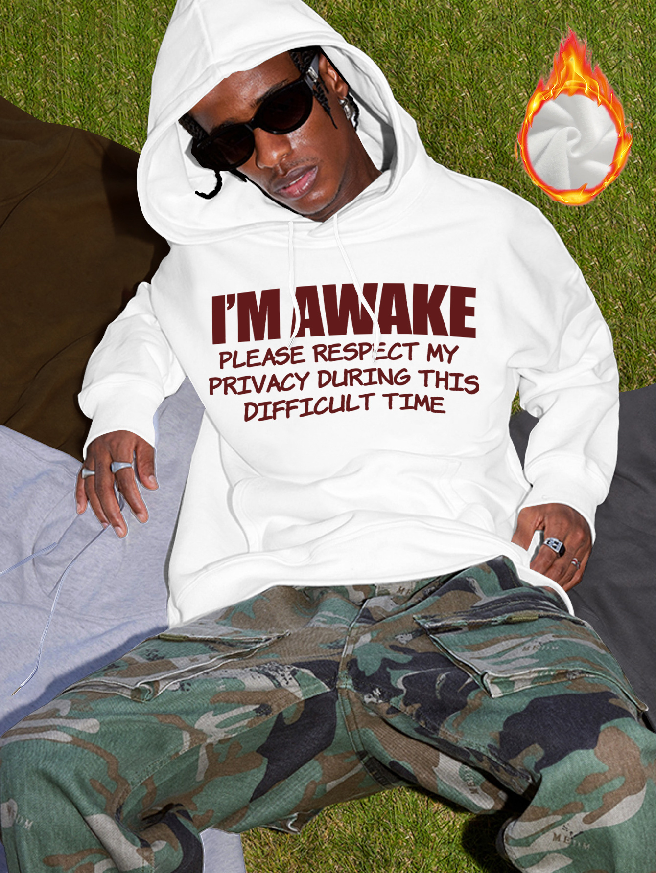 Privacy Message Lettering Hoodie for Cold Weather – Men’s Oversized Hooded Sweatshirt with